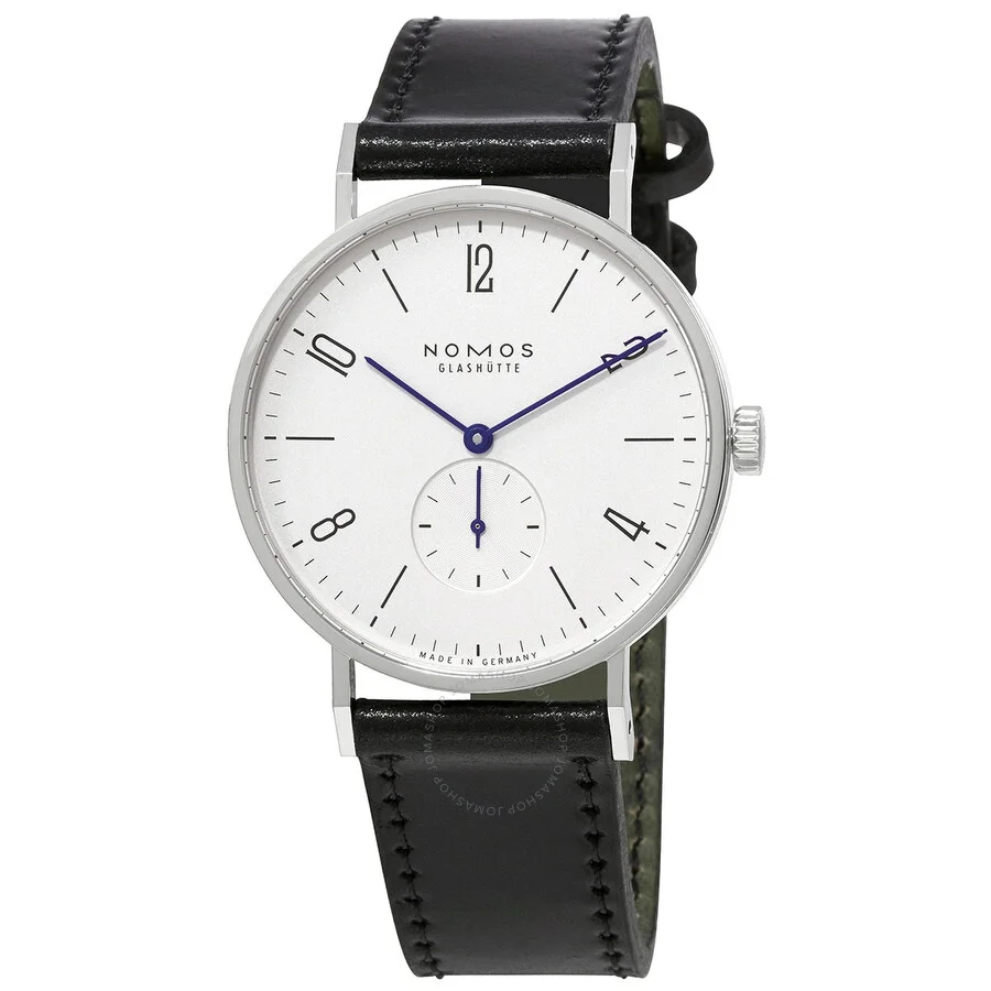 Stainless steel case with a black (horween shell) leather strap. Fixed stainless steel bezel. Galvanized, white silver-plated dial with blue stick-style hands and alternating Arabic numeral and index hour markers. Minute markers around the outer rim. Dial Type: Analog. Small seconds sub-dial. Nomos calibre Alpha hand wind movement with a 43-hour power reserve. Scratch resistant sapphire crystal. Transparent case back. Round case shape. Case size: 37.5 mm. Case thickness: 6.75 mm. Band width: 19 mm. Tang clasp. Water resistant at 30 meters / 100 feet. Functions: hour, minute, second. Additional Info: leather strap is made of shell cordovan. Casual watch style. Watch label: Made in Germany. Nomos Tangente 38 Galvanized White Silver-plated Dial Men's Watch 164. INFORMATION Brand: Nomos Series: Tangente Collection Name: Tangente Gender: Mens Model: 164 Watch Label: Made in Germany Movement: Hand Wind Engine: Nomos Calibre Alpha Power Reserve: 43 hours CASE Case Size: 37.5 mm Case Thickness: 6.75 mm Case Material: Stainless Steel Case Shape: Round Case Back: Transparent BAND Band Material: (Horween Shell) Leather Band Type: Strap Band Color: Black Band Width: 19 mm Clasp: Tang DIAL Dial Color: Galvanized, White Silver-plated Type: Analog Crystal: Scratch Resistant Sapphire Hands: Blue Stick-style shape Dial Markers: Alternating Arabic Numeral and Index Second Markers: Minute Markers around the outer rim Sub Dials: One - Small Second Bezel: Fixed Bezel Color: Silver-tone Bezel Material: Stainless Steel FEATURES Water Resistance: 30 meters / 100 feet Functions: Hour, Minute, Second Watch Features: Stainless Steel, Leather, Analog ADDITIONAL INFO Watch Style: Casual Warranty: 2 Year Jomashop Warranty UPC Code: 845960097864 Additional Info: Leather strap is made of shell cordovan Jomashop Sku: NOM164 Department: Watches Category: Watches