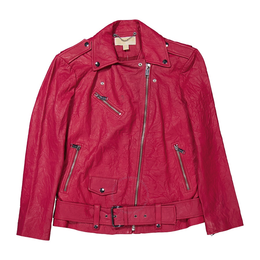 About Open Box Specials: Jomashop offers deep discounts on open box items (used item with some signs of wear) with our money back guarantee. Jomashop.com will provide a full refund minus the cost of shipping for the item if you are not satisfied with your open box purchase. You have 10 days from when your order is shipped out of our warehouse to request a RMA (Return Merchandise Authorization). Jomashop's watch warranty will still apply from your purchase date. Some conditions may apply. Read our full return policy here.Open Box / Irregular Issue: stains. Michael Kors Ladies Outerwear. Fashion category: Coats & Jackets. SKU: MU92J0K2A3-505. Color: Berry. Michael Kors Ladies Crinkled Leather Moto Jacket. This jacket from Michael Kors features a front zip closure, side zip pckets, a belted waist, long sleeves, a spread collar, epaulettes on shoulders and a zip pocket on the chest. Materials - 100% Lamb Leather, Lining: 97% Polyester/3% Elastane. GENERAL Apparel Size: Ladies Apparel Size: S INFORMATION Brand: Michael Kors Gender: Womens Model: MU92J0K2A3-505 Choose a Size: Small DETAILS Category: Outerwear ADDITIONAL INFO Jomashop Sku: OB-Z-36VSJ Department: Apparel