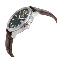 Stainless steel case with a brown leather strap. Fixed stainless steel bezel. Green dial with luminous yellow gold-tone hands and index hour markers. Arabic numerals mark the 6 and 12 o'clock positions. Minute markers around the outer rim. Dial Type: Analog. Luminescent hands and markers. Day of the week and date display at the 3 o'clock position. Automatic movement. Scratch resistant mineral crystal. Pull / push crown. Solid case back. Round case shape. Case size: 42 mm. Case thickness: 12 mm. Band width: 22 mm. Tang clasp. Water resistant at 50 meters / 165 feet. Functions: date, day, hour, minute, second. Casual watch style. Watch label: Japan Movt. Orient Classic Automatic Green Dial Men's Watch RA-AA0C06E19B. INFORMATION Brand: Orient Series: Classic Collection Name: Classic Gender: Mens Model: RA-AA0C06E19B Watch Label: Japan Movt Movement: Automatic CASE Case Size: 42 mm Case Thickness: 12 mm Case Material: Stainless Steel Case Shape: Round Case Back: Solid BAND Band Material: Leather Band Type: Strap Band Color: Brown Band Width: 22 mm Clasp: Tang DIAL Dial Color: Green Type: Analog Crystal: Scratch Resistant Mineral Hands: Luminous Yellow Gold-tone Dial Markers: Index Second Markers: Arabic Numerals mark the 6 and 12 o'clock positions. Minute Markers around the outer rim Luminiscence: Hands and Markers Bezel: Fixed Bezel Color: Silver-tone Bezel Material: Stainless Steel Crown: Pull / Push FEATURES Water Resistance: 50 meters / 165 feet Calendar: Day of the Week and Date display at the 3 o'clock position Functions: Date, Day, Hour, Minute, Second Watch Features: Stainless Steel, Leather, Gold, Analog ADDITIONAL INFO Watch Style: Casual Warranty: 1 Year Jomashop Warranty UPC Code: 4942715023454 Jomashop Sku: ONTRAAA0C06E19B Department: Watches Category: Watches