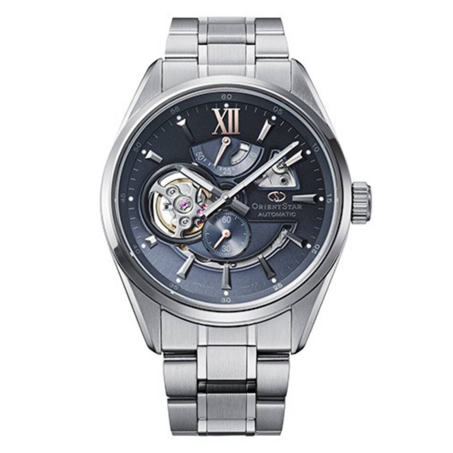 Silver-tone stainless steel case and bracelet. Fixed silver-tone stainless steel bezel. Blue dial with silver-tone hands and index-Roman numeral hour markers. Minute markers around the outer rim. Dial Type: Analog. 60 seconds, power reserve indicator subdials. Orient Calibre F6F44 automatic movement. Scratch resistant sapphire crystal. Transparent see through case back. Round case shape, case size: 41 mm. Fold over clasp with a safety release. Water resistant at 100 meters / 330 feet. Functions: hour, minute, second, power reserve. Additional Info: limited edition of 1,000 pieces. Contemporary Series. Sport watch style. Watch label: Japan Movt. Item Variations: RE-AV0132L. Orient Contemporary Automatic Blue Dial Men's Watch RE-AV0132L00B. GENERAL Box Type: Original Box CASE Case Material: Stainless Steel Case Shape: Round Case Back: Transparent See Through BAND Band Material: Stainless Steel Band Type: Bracelet Band Color: Silver-tone Clasp: Fold Over with Safety Release DIAL Dial Color: Blue Type: Analog Crystal: Scratch Resistant Sapphire Hands: Silver-tone Dial Markers: Index-Roman Numeral Second Markers: Minute Markers around the outer rim Sub Dials: 60 Seconds, Power Reserve Indicator Bezel: Fixed Bezel Color: Silver-tone Bezel Material: Stainless Steel INFORMATION Brand: Orient Series: Contemporary Collection Name: Contemporary Gender: Mens Model: RE-AV0132L00B Watch Label: Japan Movt Movement: Automatic Engine: Orient Calibre F6F44 FEATURES Water Resistance: 100 meters / 330 feet Functions: Hour, Minute, Second, Power Reserve Watch Features: Analog, Power Reserve Indicator, Stainless Steel ADDITIONAL INFO Watch Style: Sport Warranty: 1 Year Jomashop Warranty Additional Info: Limited edition of 1,000 pieces Jomashop Sku: ONTRE-AV0132L00B Item Variation: RE-AV0132L Department: Watches