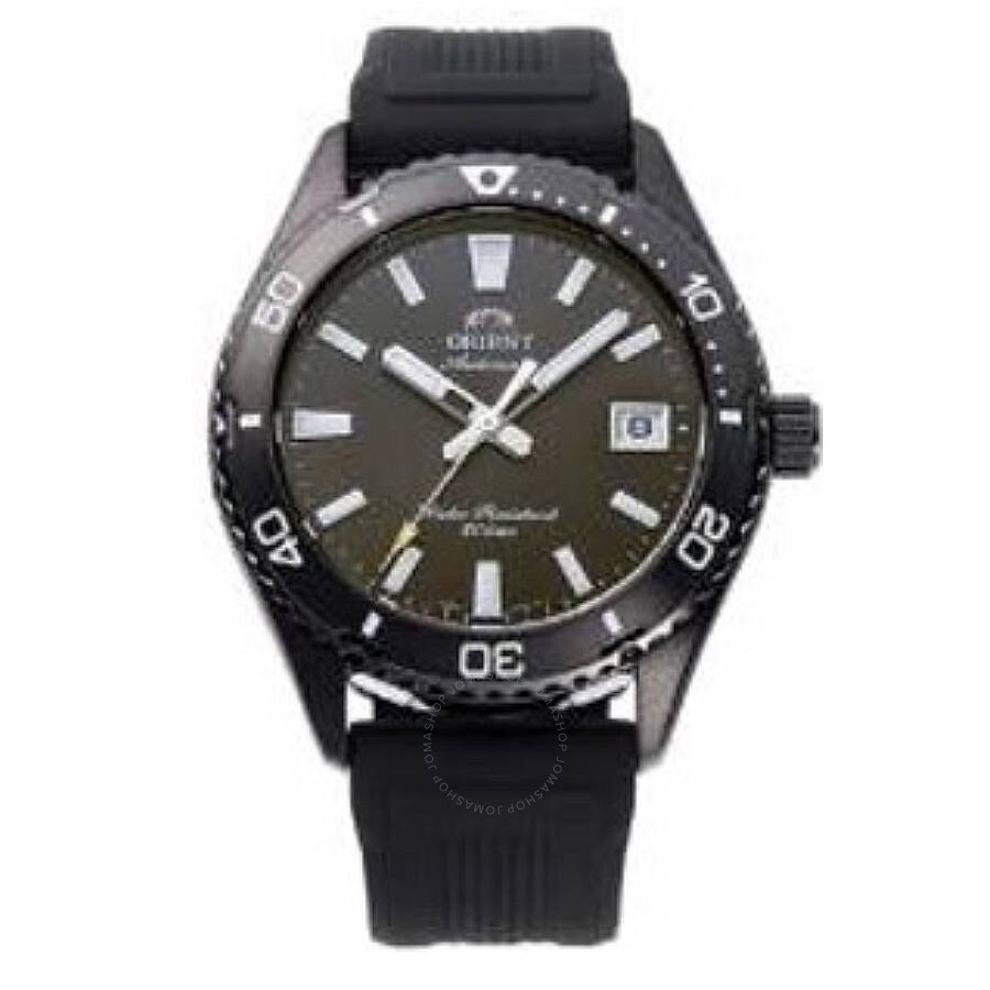 Black stainless steel case with a black rubber strap. Black stainless steel bezel. Black dial with silver-tone hands and index hour markers. Minute markers around the outer rim. Dial Type: Analog. Date display at the 3 o'clock position. Orient Calibre F6722 Automatic movement, containing 22 Jewels, bitting at 21600 vph, and has a power reserve of approximately 40 hours. Scratch resistant sapphire crystal. Screw down crown. Solid case back. Round case shape, case size: 39.9 mm, case thickness: 13 mm. Buckle clasp. Water resistant at 200 meters / 660 feet. Functions: date, hour, minute, second. Mako Series. Sport watch style. Watch label: Japan Movt. Orient Mako Automatic Black Dial Men's Watch Ra-Ac0q10n30b. GENERAL Box Type: Original Box CASE Case Thickness: 13 mm Case Material: Stainless Steel Case Shape: Round Case Back: Solid BAND Band Material: Rubber Band Type: Strap Band Color: Black Clasp: Buckle DIAL Dial Color: Black Type: Analog Crystal: Scratch Resistant Sapphire Hands: Silver-tone Dial Markers: Index Second Markers: Minute Markers around the outer rim Bezel Color: Black Bezel Material: Stainless Steel Crown: Screw Down INFORMATION Brand: Orient Series: Mako Collection Name: MAKO Gender: Mens Model: RA-AC0Q10N30B Watch Label: Japan Movt Movement: Automatic Engine: Orient Calibre F6722 Power Reserve: 40 hours FEATURES Water Resistance: 200 meters / 660 feet Calendar: Date display at the 3 o'clock position Functions: Date, Hour, Minute, Second Watch Features: Analog, Rubber, Stainless Steel ADDITIONAL INFO Watch Style: Sport Warranty: 1 Year Jomashop Warranty Jomashop Sku: ONTRA-AC0Q10N30B Department: Watches