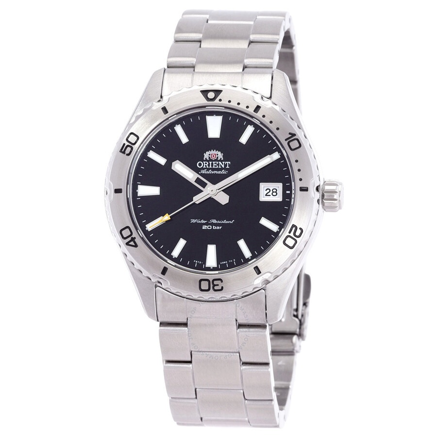 Silver-tone stainless steel case and bracelet. Uni-directional rotating silver-tone stainless steel bezel. Black dial with silver-tone hands and index hour markers. Minute markers around the outer rim. Dial Type: Analog. Luminescent hands and markers. Date display at the 3 o'clock position. Orient Calibre F6722 Automatic movement, containing 22 Jewels, bitting at 21600 vph, and has a power reserve of approximately 40 hours. Scratch resistant sapphire crystal. Screw down crown. Solid case back. Round case shape, case size: 39.9 mm, case thickness: 12.8 mm. Band width: 20 mm. Fold over clasp with a safety release. Water resistant at 200 meters / 660 feet. Functions: date, hour, minute, second. Sports Series. Sport watch style. Watch label: Japan Movt. Item Variations: RA-AC0Q01B30B. Orient Sports Automatic Black Dial Men's Watch RA-AC0Q01B10B. CASE Case Size: 39 Case Thickness: 12.8 mm Case Material: Stainless Steel Case Shape: Round Case Back: Solid BAND Band Material: Stainless Steel Band Type: Bracelet Band Color: Silver-tone Band Width: 20 mm Clasp: Fold Over with Safety Release DIAL Dial Color: Black Type: Analog Crystal: Scratch Resistant Sapphire Hands: Silver-tone Dial Markers: Index Second Markers: Minute Markers around the outer rim Luminiscence: Hands and Markers Bezel: Uni-directional Rotating Bezel Color: Silver-tone Bezel Material: Stainless Steel Crown: Screw Down INFORMATION Brand: Orient Series: Sports Collection Name: Sports Gender: Mens Model: RA-AC0Q01B10B Watch Label: Japan Movt Movement: Automatic Engine: Orient Calibre F6722 Power Reserve: 40 hours FEATURES Water Resistance: 200 meters / 660 feet Calendar: Date display at the 3 o'clock position Functions: Date, Hour, Minute, Second Watch Features: Stainless Steel, Analog ADDITIONAL INFO Watch Style: Sport Warranty: 1 Year Jomashop Warranty Jomashop Sku: ONTRAAC0Q01B10B Item Variation: RA-AC0Q01B30B Department: Watches