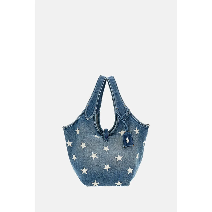 Polo Ralph Lauren Ladies Tote. SKU: 428P01451001CHRISTYWASH. Color: Blue. Size: W D 17,8 cmH x H x D cm handle 39,4 cmW . Polo Ralph Lauren Embroidered Tote Bag. Tote bag with embroidered stars, in denim fabric. Two handles Front closure with snap button. It also has a metal and leather loop/ring keeper. Unlined interior. Removable key ring/keychain. Composition: 100% Cotton GENERAL Size Info: W D 17,8 cmH x H x D cm handle 39,4 cmW Color: Blue INFORMATION Brand: Polo Ralph Lauren Gender: Womens Model: 428P01451001CHRISTYWASH ADDITIONAL INFO UPC Code: 3616857089593 Jomashop Sku: Z-PP4KV Department: Bags Category: Tote Bags