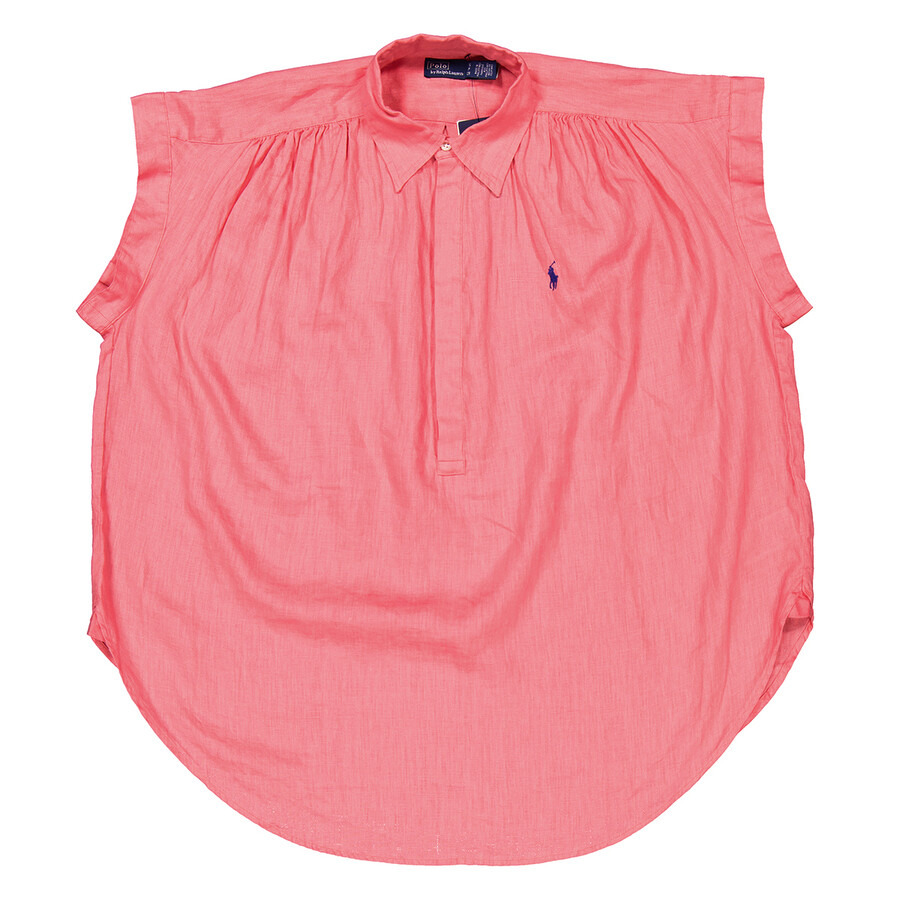 Polo Ralph Lauren Ladies Tops. Fashion category: Shirts & Blouses. SKU: 211935131002. Color: Pink. Polo Ralph Lauren Polo Pony Linen Popover Shirt. This linen shirt features a point collar, a concealed buttoned half-placket, and short dolman sleeves with sewn cuffs. Shirring at the front shoulder seam, a gusseted shirttail hem, and a box-pleated back yoke add refined details, while the signature embroidered Pony accents the left chest. 100% Linen. GENERAL Color: Pink INFORMATION Brand: Polo Ralph Lauren Gender: Womens Model: 211935131002 DETAILS Category: Tops Apparel Type: Shirts & Blouses Material: Linen ADDITIONAL INFO Jomashop Sku: -211935131002N Department: Clothing