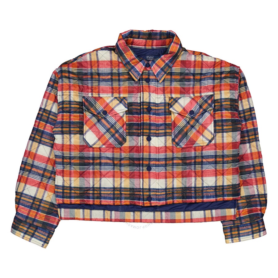 Polo Ralph Lauren Ladies Outerwear. Fashion category: Coats & Jackets. SKU: 211888262001. Color: 13231 Blue/Red/Gold Multi. Polo Ralph Lauren Quilted Check Cropped Shell Jacket. This utilitarian-style cropped cover-up, made from recycled nylon with a checked, quilted design, features a water-repellent finish, snap front closure, long sleeves, two front patch pockets, and a step hem, offering a regular fit with added insulation and protection from sudden downpours. 100% polyester; filling 100% polyester. GENERAL Size Info: Medium Clothing Size: Ladies Apparel Size: M Color: 13231 Blue/Red/Gold Multi INFORMATION Brand: Polo Ralph Lauren Gender: Womens Model: 211888262001 DETAILS Category: Outerwear Apparel Type: Coats & Jackets ADDITIONAL INFO UPC Code: 3616850224939 Jomashop Sku: Z-J3QQ6 Department: Clothing
