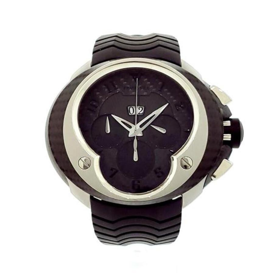 Silver-tone stainless steel case with a black rubber strap. Fixed silver-tone stainless steel bezel. Black dial with silver-tone hands and Arabic numeral hour markers. Dial Type: Analog. Day display at the 12 o'clock position. Chronograph - three sub-dials displaying: 60 second, 30 minute and 12 hour. Automatic movement. Scratch resistant sapphire crystal. Screw down crown. Transparent case back. Round case shape. Case size: 52 mm. Band width: 26 mm. Deployment with push button release clasp. Water resistant at 300 meters / 1000 feet. Functions: chronograph, date, hour, minute, second. Sport watch style. Pre-owned Franc Vila EVOS 8 COBRA Chronograph Automatic Black Dial Men's Watch FVEVOS8CHCOBRA. Box: No ,Paper: No GENERAL Collection Name: EVOS 8 COBRA INFORMATION Brand: Franc Vila Series: Evos 8 Cobra Model: FVEVOS8CHCOBRA Gender: Mens Movement: Automatic CONDITION INFORMATION Box: No Preowned Item Condition: Excellent Papers: No CASE Case Size: 52 mm Case Material: Stainless Steel Case Shape: Round Case Back: Transparent DIAL Type: Analog Dial Color: Black Crystal: Scratch Resistant Sapphire Hands: Silver-tone Dial Markers: Arabic Numeral Sub Dials: Three - 60 Second, 30 Minute and 12 Hour Bezel: Fixed Bezel Color: Silver-tone Bezel Material: Stainless Steel Crown: Screw Down BAND Band Type: Strap Band Material: Rubber Band Color: Black Band Width: 26 mm Clasp: Deployment with Push Button Release FEATURES Water Resistance: 300 meters / 1000 feet Calendar: Day display at the 12 o'clock position Functions: Chronograph, Date, Hour, Minute, Second Watch Features: Chronograph, Stainless Steel, Rubber, Analog ADDITIONAL INFO Watch Style: Sport Warranty: 1 Year Jomashop Warranty Jomashop Sku: PRE-P-FV32196 Department: Watches Category: Watches