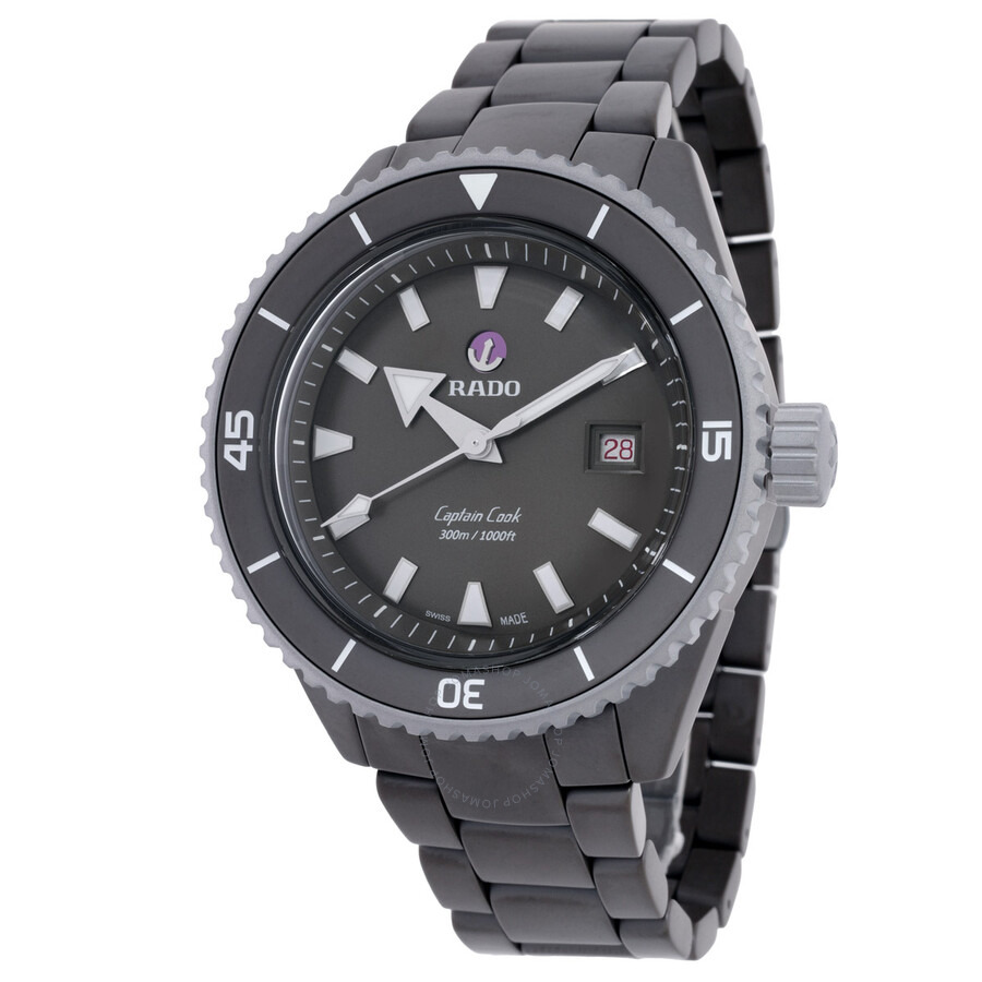 Green ceramic case and bracelet. Green ceramic bezel. Green dial with silver-tone hands and index hour markers. Minute markers around the outer rim. Dial Type: Analog. Luminescent hands and markers. Date display at the 3 o'clock position. Rado Calibre R763 automatic movement with an 80-hour power reserve. Scratch resistant sapphire crystal. Screw down crown. Round case shape, case size: 43 mm. Fold over clasp with a safety release. Water resistant at 300 meters / 1000 feet. Functions: date, hour, minute, second. Captain Cook Series. Dive watch style. Watch label: Swiss Made. Item Variations: 01.763.6130.3.031. Rado Captain Cook Automatic Green Dial Men's Watch R32130312. GENERAL Box Type: Original Box CASE Case Diameter: 43 mm Case Material: Ceramic Case Shape: Round BAND Band Material: Ceramic Band Type: Bracelet Band Color: Green Clasp: Fold Over with Safety Release DIAL Dial Color: Green Type: Analog Crystal: Scratch Resistant Sapphire Hands: Silver-tone Dial Markers: Index Second Markers: Minute Markers around the outer rim Luminiscence: Hands and Markers Bezel Color: Green Bezel Material: Ceramic Crown: Screw Down INFORMATION Brand: Rado Series: Captain Cook Collection Name: Captain Cook Gender: Mens Model: R32130312 Watch Label: Swiss Made Movement: Automatic Engine: Rado Calibre R763 Power Reserve: 80 hours FEATURES Water Resistance: 300 meters / 1000 feet Calendar: Date display at the 3 o'clock position Functions: Date, Hour, Minute, Second Watch Features: Ceramic, Analog ADDITIONAL INFO Watch Style: Dive Warranty: 2 Year Jomashop Warranty Jomashop Sku: RADO-R32130312 Item Variation: 01.763.6130.3.031 Department: Watches