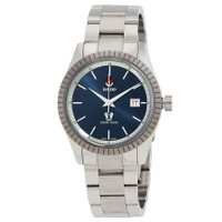 Silver-tone stainless steel and high-tech ceramic case with a silver-tone stainless steel bracelet. Fixed silver-tone stainless steel bezel. Blue dial with silver-tone hands and index hour markers. Minute markers around the outer rim. Dial Type: Analog. Date display at the 3 o'clock position. Automatic movement. Scratch resistant sapphire crystal. Pull / push crown. Transparent case back. Round case shape, case size: 41.8 mm, case thickness: 10.4 mm. Band width: 22 mm. Fold over clasp with a safety release. Water resistant at 50 meters / 165 feet. Functions: date, hour, minute, second. Golden Horse Hyperchrome Classic Series. Casual watch style. Watch label: Swiss Made. Item Variations: 01.763.6101.3.020. Rado Golden Horse HyperChrome Classic Automatic Blue Dial Men's Watch R33101204. CASE Case Size: 41 Case Thickness: 10.4 mm Case Material: Stainless Steel and High-tech Ceramic Case Shape: Round Case Back: Transparent BAND Band Material: Stainless Steel Band Type: Bracelet Band Color: Silver-tone Band Width: 22 mm Clasp: Fold Over with Safety Release DIAL Dial Color: Blue Type: Analog Crystal: Scratch Resistant Sapphire Hands: Silver-tone Dial Markers: Index Second Markers: Minute Markers around the outer rim Bezel: Fixed Bezel Color: Silver-tone Bezel Material: Stainless Steel Crown: Pull / Push INFORMATION Brand: Rado Series: Golden Horse Hyperchrome Classic Collection Name: Golden Horse HyperChrome Classic Gender: Mens Model: R33101204 Watch Label: Swiss Made Movement: Automatic FEATURES Water Resistance: 50 meters / 165 feet Calendar: Date display at the 3 o'clock position Functions: Date, Hour, Minute, Second Watch Features: Analog, Ceramic, Gold, Stainless Steel ADDITIONAL INFO Watch Style: Casual Warranty: 2 Year Jomashop Warranty Jomashop Sku: RADO-R33101204 Item Variation: 01.763.6101.3.020 Department: Watches Category: Watches