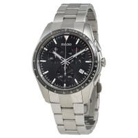 Stainless steel case with a stainless steel bracelet. Fixed stainless steel bezel with a black top ring showing tachymeter markings. Black dial with luminous silver-tone hands and index hour markers. Minute markers around the outer rim. Dial Type: Analog. Luminescent hands and markers. Date display at the 4 o'clock position. Chronograph - three sub-dials displaying: 60 second, 30 minute and 1/10th of a second. Quartz movement. Scratch resistant sapphire crystal. Pull / push crown. Solid case back. Round case shape. Case size: 44.9 mm. Case thickness: 11.7 mm. Fold over clasp with a push button release. Water resistant at 100 meters / 330 feet. Functions: chronograph, tachymeter, date, hour, minute, second. Dress watch style. Watch label: Swiss Made. Rado HyperChrome Chronograph Black Dial Men's Watch R32259153. GENERAL Box Type: Original Box CASE Case Size: 44 Case Thickness: 11.7 mm Case Material: Stainless Steel Case Shape: Round Case Back: Solid BAND Band Material: Stainless Steel Band Type: Bracelet Band Color: Silver-tone Band Width: 20 mm Clasp: Fold Over with Push Button Release DIAL Dial Color: Black Type: Analog Crystal: Scratch Resistant Sapphire Hands: Luminous Silver-tone Dial Markers: Index Second Markers: Minute Markers around the outer rim Sub Dials: Three - 60 Second, 30 Minute and 1/10th of a Second Luminiscence: Hands and Markers Bezel: Fixed Bezel Color: Silver-tone Bezel Material: Stainless Steel with a Black Top Ring showing Tachymeter Markings Crown: Pull / Push INFORMATION Brand: Rado Series: Hyperchrome Collection Name: HyperChrome Gender: Mens Model: R32259153 Watch Label: Swiss Made Movement: Quartz FEATURES Water Resistance: 100 meters / 330 feet Calendar: Date display at the 4 o'clock position Functions: Chronograph, Tachymeter, Date, Hour, Minute, Second Watch Features: Analog, Stainless Steel, Chronograph ADDITIONAL INFO Watch Style: Dress Warranty: 2 Year Jomashop Warranty UPC Code: 7612819054995 Jomashop Sku: RADO-R32259153 Item Variation: 01.312.0259.3.015 Department: Watches Category: Watches