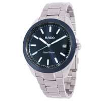 Silver-tone stainless steel case and bracelet. Fixed dark blue ceramic bezel. Dark blue sunray dial with silver-tone hands and index hour markers. Minute markers around the outer rim. Dial Type: Analog. Luminescent hands and markers. Date display at the 3 o'clock position. Rado Calibre 292 quartz movement. Scratch resistant sapphire crystal. Solid case back. Round case shape, case size: 41.5 mm, case thickness: 11.7 mm. Fold over clasp with a safety release. Water resistant at 150 meters / 500 feet. Functions: date, hour, minute, second. Hyperchrome Series. Casual watch style. Watch label: Swiss Made. Rado HyperChrome Quartz Dark Blue Dial Men's Watch R32280203. GENERAL Box Type: Original Box CASE Case Thickness: 11.7 mm Case Material: Stainless Steel Case Shape: Round Case Back: Solid BAND Band Material: Stainless Steel Band Type: Bracelet Band Color: Silver-tone Clasp: Fold Over with Safety Release DIAL Dial Color: Dark Blue Sunray Type: Analog Crystal: Scratch Resistant Sapphire Hands: Silver-tone Dial Markers: Index Second Markers: Minute Markers around the outer rim Luminiscence: Hands and Markers Bezel: Fixed Bezel Color: Dark Blue Bezel Material: Ceramic INFORMATION Brand: Rado Series: Hyperchrome Collection Name: HyperChrome Gender: Mens Model: R32280203 Watch Label: Swiss Made Movement: Quartz Engine: Rado Calibre 292 FEATURES Water Resistance: 150 meters / 500 feet Calendar: Date display at the 3 o'clock position Functions: Date, Hour, Minute, Second Watch Features: Analog, Ceramic, Stainless Steel ADDITIONAL INFO Watch Style: Casual Warranty: 2 Year Jomashop Warranty UPC Code: 7612819066011 Jomashop Sku: RADO-R32280203 Department: Watches