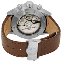 Grey PVD stainless steel case with a brown (calfskin) leather strap. Fixed grey PVD bezel. Blue dial with luminous silver-tone hands and index hour markers. Minute markers. Tachymeter markings around the outer rim. Dial Type: Analog. Luminescent hands and markers. Day of the week and date display at the 3 o'clock position. Chronograph - three sub-dials displaying: 60 second, 30 minute and 12 hours. Automatic movement with a 48-hour power reserve. Scratch resistant sapphire crystal. Screw down crown. Transparent case back. Round case shape. Case size: 42 mm. Case thickness: 13.85 mm. Fold over clasp. Water resistant at 100 meters / 330 feet. Functions: chronograph, date, day of the week, hour, minute, second. Freelancer Series. Casual watch style. Watch label: Swiss Made. Raymond Weil Freelancer Chronograph Automatic Blue Dial Men's Watch 7732-TIC-50421. GENERAL Box Type: Original Box CASE Case Size: 42 Case Thickness: 13.85 mm Case Material: Stainless Steel Case Shape: Round Case Back: Transparent BAND Band Material: (Calfskin) Leather Band Type: Strap Band Color: Brown Clasp: Fold Over DIAL Dial Color: Blue Type: Analog Crystal: Scratch Resistant Sapphire Hands: Luminous Silver-tone Dial Markers: Index Second Markers: Minute Markers. Tachymeter Markings around the outer rim Sub Dials: Three - 60 Second, 30 Minute and 12 Hours Luminiscence: Hands and Markers Bezel: Fixed Bezel Color: Grey PVD Bezel Material: Stainless Steel Crown: Screw Down INFORMATION Brand: Raymond Weil Series: Freelancer Collection Name: Freelancer Gender: Mens Model: 7732-TIC-50421 Watch Label: Swiss Made Movement: Automatic Power Reserve: 48 hours FEATURES Water Resistance: 100 meters / 330 feet Calendar: Day of the Week and Date display at the 3 o'clock position Functions: Chronograph, Date, Day of the Week, Hour, Minute, Second Watch Features: Analog, Leather, Stainless Steel, Chronograph ADDITIONAL INFO Watch Style: Casual Warranty: 2 Year Jomashop Warranty UPC Code: 7611784048695 Jomashop Sku: RW-7732-TIC-50421 Department: Watches Category: Watches