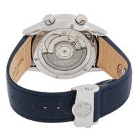 Silver-tone stainless steel case with a blue leather strap. Fixed silver-tone stainless steel bezel. Blue dial with silver-tone hands and Arabic numeral hour markers. Minute markers around the outer rim. Dial Type: Analog. Luminescent hands and markers. Date display at the 6 o'clock position. Automatic movement. Scratch resistant sapphire crystal. Screw down crown. Transparent see through case back. Round case shape, case size: 40.5 mm. Deployment with push button release clasp. Water resistant at 100 meters / 330 feet. Functions: date, GMT, second time zone, hour, minute, second. Freelancer Series. Casual watch style. Watch label: Swiss Made. Raymond Weil Freelancer GMT Automatic Blue Dial Men's Watch 2761-STC-50001. CASE Case Size: 40 Case Material: Stainless Steel Case Shape: Round Case Back: Transparent See Through BAND Band Material: Leather Band Type: Strap Band Color: Blue Clasp: Deployment with Push Button Release DIAL Dial Color: Blue Type: Analog Crystal: Scratch Resistant Sapphire Hands: Silver-tone Dial Markers: Arabic Numeral Second Markers: Minute Markers around the outer rim Luminiscence: Hands and Markers Bezel: Fixed Bezel Color: Silver-tone Bezel Material: Stainless Steel Crown: Screw Down INFORMATION Brand: Raymond Weil Series: Freelancer Collection Name: Freelancer Gender: Mens Model: 2761-STC-50001 Watch Label: Swiss Made Movement: Automatic FEATURES Water Resistance: 100 meters / 330 feet Calendar: Date display at the 6 o'clock position Functions: Date, GMT, Second Time Zone, Hour, Minute, Second Watch Features: Analog, GMT, Leather, Stainless Steel, Time Zone ADDITIONAL INFO Watch Style: Casual Warranty: 2 Year Jomashop Warranty UPC Code: 762115023625 Jomashop Sku: RW2761STC50001 Department: Watches Category: Watches