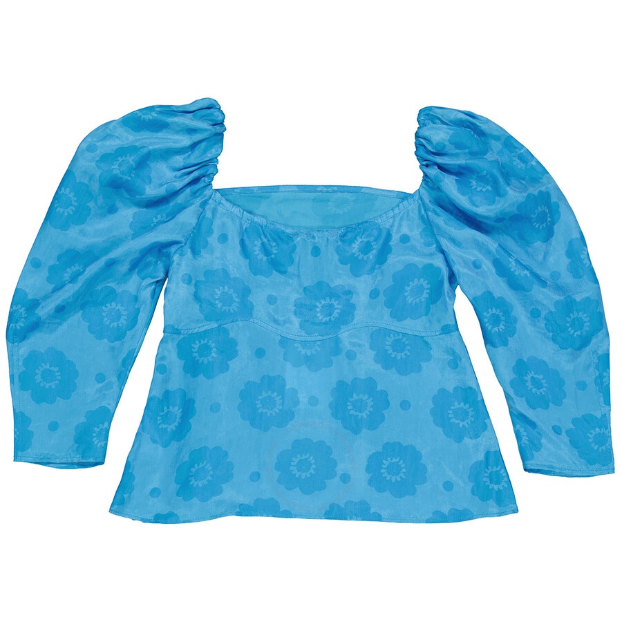 Rejina Pyo Ladies Anita Blue Floral-print Ruched Blouse, Brand Size 38 (US Size 4)