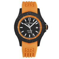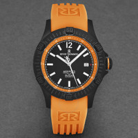 Black stainless steel case with a orange rubber strap. Uni-directional rotating black stainless steel bezel. Black dial with silver-tone hands and index hour markers. Minute markers around the outer rim. Dial Type: Analog. Luminescent hands and markers. Date display at the 3 o'clock position. Sellita Calibre SW221-1 Automatic movement, containing 26 Jewels, bitting at 28800 vph, and has a power reserve of approximately 38 hours. Scratch resistant sapphire crystal. Screw down crown. Transparent case back. Round case shape, case size: 43.5 mm, case thickness: 13 mm. Band width: 22 mm, band length: 8 inches. Deployment with push button release clasp. Water resistant at 100 meters / 330 feet. Functions: date, hour, minute, second. Additional Info: hours, minutes, seconds, date. Air Speed Series. Casual watch style. Watch label: Swiss Made. Revue Thommen Air speed Automatic Black Dial Men's Watch 16070.4679. INFORMATION Brand: Revue Thommen Series: Air Speed Collection Name: Air speed Gender: Mens Model: 16070.4679 Watch Label: Swiss Made Movement: Automatic Engine: Sellita Calibre SW221-1 Power Reserve: 38 hours CASE Case Size: 43.5 mm Case Thickness: 13 mm Case Material: Stainless Steel Case Shape: Round Case Back: Transparent BAND Band Material: Rubber Band Type: Strap Band Color: Orange Band Length: 8 inches Band Width: 22 mm Clasp: Deployment with Push Button Release DIAL Dial Color: Black Type: Analog Crystal: Scratch Resistant Sapphire Hands: Silver-tone Dial Markers: Index Second Markers: Minute Markers around the outer rim Luminiscence: Hands and Markers Bezel: Uni-directional Rotating Bezel Color: Black Bezel Material: Stainless Steel Crown: Screw Down FEATURES Water Resistance: 100 meters / 330 feet Calendar: Date Display at the 3 o'clock position Functions: Date, Hour, Minute, Second Watch Features: Stainless Steel, Rubber, Analog ADDITIONAL INFO Watch Style: Casual Warranty: 2 Year Jomashop Warranty Additional Info: Hours, Minutes, Seconds, Date Jomashop Sku: Y-A2A2P Department: Watches Category: Watches