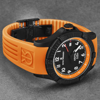 Black stainless steel case with a orange rubber strap. Uni-directional rotating black stainless steel bezel. Black dial with black hands and Arabic numeral hour markers. Minute markers around the outer rim. Dial Type: Analog. Luminescent hands and markers. Date display at the 3 o'clock position. Sellita Calibre SW221-1 Automatic movement, containing 26 Jewels, bitting at 28800 vph, and has a power reserve of approximately 38 hours. Scratch resistant sapphire crystal. Screw down crown. Transparent case back. Round case shape, case size: 43.5 mm, case thickness: 13 mm. Band width: 22 mm, band length: 8 inches. Deployment with push button release clasp. Water resistant at 100 meters / 330 feet. Functions: date, hour, minute, second. Additional Info: hours, minutes, seconds, date. Air Speed Series. Casual watch style. Watch label: Swiss Made. Revue Thommen Air speed Automatic Black Dial Men's Watch 16070.4779. INFORMATION Brand: Revue Thommen Series: Air Speed Collection Name: Air speed Gender: Mens Model: 16070.4779 Watch Label: Swiss Made Movement: Automatic Engine: Sellita Calibre SW221-1 Power Reserve: 38 hours CASE Case Size: 43.5 mm Case Thickness: 13 mm Case Material: Stainless Steel Case Shape: Round Case Back: Transparent BAND Band Material: Rubber Band Type: Strap Band Color: Orange Band Length: 8 inches Band Width: 22 mm Clasp: Deployment with Push Button Release DIAL Dial Color: Black Type: Analog Crystal: Scratch Resistant Sapphire Hands: Black Dial Markers: Arabic Numeral Second Markers: Minute Markers around the outer rim Luminiscence: Hands and Markers Bezel: Uni-directional Rotating Bezel Color: Black Bezel Material: Stainless Steel Crown: Screw Down FEATURES Water Resistance: 100 meters / 330 feet Calendar: Date Display at the 3 o'clock position Functions: Date, Hour, Minute, Second Watch Features: Stainless Steel, Rubber, Analog ADDITIONAL INFO Watch Style: Casual Warranty: 2 Year Jomashop Warranty Additional Info: Hours, Minutes, Seconds, Date Jomashop Sku: Y-A2A36 Department: Watches Category: Watches