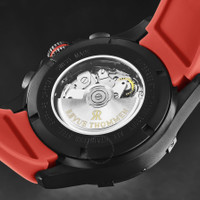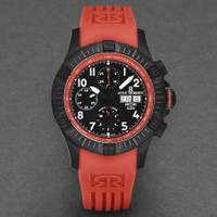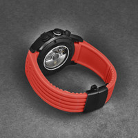 Black stainless steel case with a red rubber strap. Uni-directional rotating black stainless steel bezel. Black dial with black hands and Arabic numeral hour markers. Minute markers around the outer rim. Dial Type: Analog. Luminescent hands and markers. Day of the week and date display at the 3 o'clock position. Chronograph - three sub-dials displaying: 60 second, 30 minute and 12 hour. ETA-Valjoux Caliber 7750 Automatic movement, containing 25 Jewels, bitting at 28800 vph, and has a power reserve of approximately 44 hours. Scratch resistant sapphire crystal. Screw down crown. Transparent case back. Round case shape, case size: 43.5 mm, case thickness: 15.6 mm. Band width: 22 mm, band length: 8 inches. Deployment with push button release clasp. Water resistant at 100 meters / 330 feet. Functions: chronograph, date, day, hour, minute, second. Additional Info: hours, minutes, seconds, day-date, chronograph. Air Speed Series. Luxury watch style. Watch label: Swiss Made. Revue Thommen Air speed Chronograph Black Dial Men's Watch 16071.6776. INFORMATION Brand: Revue Thommen Series: Air Speed Collection Name: Air speed Gender: Mens Model: 16071.6776 Watch Label: Swiss Made Movement: Automatic Engine: ETA-Valjoux Caliber 7750 Power Reserve: 44 hours CASE Case Size: 43.5 mm Case Thickness: 15.6 mm Case Material: Stainless Steel Case Shape: Round Case Back: Transparent BAND Band Material: Rubber Band Type: Strap Band Color: Red Band Length: 8 inches Band Width: 22 mm Clasp: Deployment with Push Button Release DIAL Dial Color: Black Type: Analog Crystal: Scratch Resistant Sapphire Hands: Black Dial Markers: Arabic Numeral Second Markers: Minute Markers around the outer rim Sub Dials: Three - 60 Second, 30 Minute and 12 Hour Luminiscence: Hands and Markers Bezel: Uni-directional Rotating Bezel Color: Black Bezel Material: Stainless Steel Crown: Screw Down FEATURES Water Resistance: 100 meters / 330 feet Calendar: Day of the Week and Date display at the 3 o'clock position Functions: Chronograph, Date, Day, Hour, Minute, Second Watch Features: Chronograph, Stainless Steel, Rubber, Analog ADDITIONAL INFO Watch Style: Luxury Warranty: 2 Year Jomashop Warranty Additional Info: Hours, Minutes, Seconds, Day-Date, Chronograph Jomashop Sku: Y-A2D8L Department: Watches Category: Watches