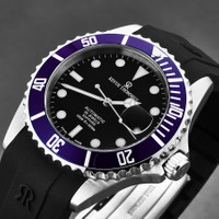 Stainless steel case with a black rubber strap. Uni-directional rotating stainless steel bezel with an inlaid blue ring. Black dial with luminous silver-tone hands and dot hour markers. Minute markers around the outer rim. Dial Type: Analog. Luminescent hands and markers. Date display at the 3 o'clock position. Automatic movement. Scratch resistant sapphire crystal. Screw down crown. Solid case back. Round case shape. Case size: 42 mm. Case thickness: 12.65 mm. Band width: 22 mm. Band length: 8 inches. Deployment with push button release clasp. Water resistant at 300 meters / 1000 feet. Functions: date, hour, minute, second. Diver Series. Luxury watch style. Watch label: Swiss Made. Revue Thommen Diver Automatic Black Dial Men's Watch 17571.2835. INFORMATION Brand: Revue Thommen Series: Diver Collection Name: Diver Gender: Mens Model: 17571.2835 Watch Label: Swiss Made Movement: Automatic CASE Case Size: 42 mm Case Thickness: 12.65 mm Case Material: Stainless Steel Case Shape: Round Case Back: Solid BAND Band Material: Rubber Band Type: Strap Band Color: Black Band Length: 8 inches Band Width: 22 mm Clasp: Deployment with Push Button Release DIAL Dial Color: Black Type: Analog Crystal: Scratch Resistant Sapphire Hands: Luminous Silver-tone Dial Markers: Dot Second Markers: Minute Markers around the outer rim Luminiscence: Hands and Markers Bezel: Uni-directional Rotating Bezel Color: Silver-tone Bezel Material: Stainless Steel with an inlaid Blue Ring Crown: Screw Down FEATURES Water Resistance: 300 meters / 1000 feet Calendar: Date display at the 3 o'clock position Functions: Date, Hour, Minute, Second Watch Features: Stainless Steel, Rubber, Analog ADDITIONAL INFO Watch Style: Luxury Warranty: 2 Year Jomashop Warranty UPC Code: 794504462449 Jomashop Sku: Y-146354 Department: Watches Category: Watches