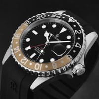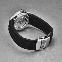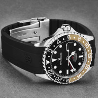 Silver-tone stainless steel case with a black rubber strap. Bi-directional rotating beige stainless steel bezel. Black dial with silver-tone hands and index hour markers. Minute markers around the outer rim. Dial Type: Analog. Luminescent hands and markers. Date display at the 3 o'clock position. Sellita Caliber SW330-1 Automatic movement, containing 25 Jewels, bitting at 28800 vph, and has a power reserve of approximately 42 hours. Scratch resistant sapphire crystal. Screw down crown. Transparent case back. Round case shape, case size: 42 mm, case thickness: 13 mm. Band width: 22 mm, band length: 8 inches. Fold over clasp with a safety release. Water resistant at 300 meters / 1000 feet. Functions: date, GMT, second time zone, hour, minute, second. Additional Info: hours, minutes, sweep seconds with hack feature - quick-set date at 3:00 - independantly adjustable second timezone. Diver Series. Luxury watch style. Watch label: Swiss Made. Revue Thommen Diver Automatic Black Dial Men's Watch 17572.2832. INFORMATION Brand: Revue Thommen Series: Diver Collection Name: Diver Gender: Mens Model: 17572.2832 Watch Label: Swiss Made Movement: Automatic Engine: Sellita Caliber SW330-1 Power Reserve: 42 hours CASE Case Size: 42 mm Case Thickness: 13 mm Case Material: Stainless Steel Case Shape: Round Case Back: Transparent BAND Band Material: Rubber Band Type: Strap Band Color: Black Band Length: 8 inches Band Width: 22 mm Clasp: Fold Over with Safety Release DIAL Dial Color: Black Type: Analog Crystal: Scratch Resistant Sapphire Hands: Silver-tone Dial Markers: Index Second Markers: Minute Markers around the outer rim Luminiscence: Hands and Markers Bezel: Bi-directional Rotating Bezel Color: Beige Bezel Material: Stainless Steel Crown: Screw Down FEATURES Water Resistance: 300 meters / 1000 feet Calendar: Date display at the 3 o'clock position Functions: Date, GMT, Second Time Zone, Hour, Minute, Second Watch Features: Time Zone, Stainless Steel, Rubber, GMT, Analog ADDITIONAL INFO Watch Style: Luxury Warranty: 2 Year Jomashop Warranty Additional Info: Hours, Minutes, Sweep Seconds with hack feature - quick-set Date at 3:00 - independantly adjustable second timezone Jomashop Sku: Y-A2HTX Department: Watches Category: Watches