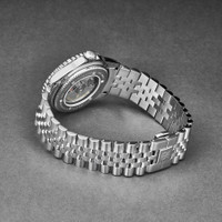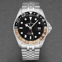 Silver-tone stainless steel case and bracelet. Bi-directional rotating multi-color stainless steel bezel. Black dial with silver-tone hands and index hour markers. Minute markers around the outer rim. Dial Type: Analog. Luminescent hands and markers. Date display at the 3 o'clock position. Sellita Caliber SW330-1 Automatic movement, containing 25 Jewels, bitting at 28800 vph, and has a power reserve of approximately 42 hours. Scratch resistant sapphire crystal. Screw down crown. Transparent case back. Round case shape, case size: 42 mm, case thickness: 12.65 mm. Band width: 22 mm, band length: 8 inches. Deployment with push button release clasp. Water resistant at 300 meters / 1000 feet. Functions: date, GMT, second time zone, hour, minute, second. Additional Info: hour, minute, second, date, GMT. Diver Gmt Series. Dive watch style. Watch label: Swiss Made. Revue Thommen Diver GMT Automatic Black Dial Men's Watch 17572.2232. CASE Case Size: 42 Case Thickness: 12.65 mm Case Material: Stainless Steel Case Shape: Round Case Back: Transparent BAND Band Material: Stainless Steel Band Type: Bracelet Band Color: Silver-tone Band Length: 8 inches Band Width: 22 mm Clasp: Deployment with Push Button Release DIAL Dial Color: Black Type: Analog Crystal: Scratch Resistant Sapphire Hands: Silver-tone Dial Markers: Index Second Markers: Minute Markers around the outer rim Luminiscence: Hands and Markers Bezel: Bi-directional Rotating Bezel Color: Multi-Color Bezel Material: Stainless Steel Crown: Screw Down INFORMATION Brand: Revue Thommen Series: Diver Gmt Collection Name: Diver GMT Gender: Mens Model: 17572.2232 Watch Label: Swiss Made Movement: Automatic Engine: Sellita Caliber SW330-1 Power Reserve: 42 hours FEATURES Water Resistance: 300 meters / 1000 feet Calendar: Date Display at the 3 o'clock position Functions: Date, GMT, Second Time Zone, Hour, Minute, Second Watch Features: Time Zone, Stainless Steel, Analog, GMT ADDITIONAL INFO Watch Style: Dive Warranty: 2 Year Jomashop Warranty Additional Info: Hour, Minute, Second, Date, GMT Jomashop Sku: Y-A2X3U Department: Watches Category: Watches