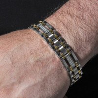 Build the perfect accessory collection link by link with this men's diamond bracelet, boasting 1/4CTW white diamond accents. At 15.5MM wide, 3MM thick, and 8.75" long, this bracelet makes a statement and looks good doing it. Robert Alton Men's Bracelets. SKU: TS10943. Barcode: 195091037469. Color: Two-tone. Metal Type: Stainless Steel. Metal Stamp: No Stamp. Gem stone type: Diamond. Stone weight: 0.004ct. Number of stones: 72. Stone clarity: I2-I3. Stone shape: Round. Stone color: White. Bracelet style: Link. Closure type: Jewelry. Robert Alton 1/4 CTW Men's Stainless Steel Bracelet with Diamonds. GENERAL Stone Shape: Round Color: Two-tone INFORMATION Brand: Robert Alton Gender: Mens Model: TS10943 DETAILS Size Info: 8.75 inches Bracelet Style : Link Closure Type: Jewelry Material : Stainless Steel Metal Stamp: No Stamp Stone Type: Diamond Stone Weight: 0.004 Stone Color: White Stone Cut: Round Stone Clarity: I2-I3 Stone Origin: Natural Total Stones: 72 ADDITIONAL INFO UPC Code: 195091037469 Jomashop Sku: Y-A4VNL Department: Jewelry Category: Bracelets