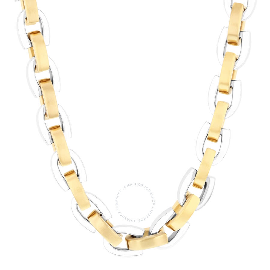 Yellow and white bring out the best in each other in this men's stainless steel bracelet. Take any look to the next level with this chain, which measures 10MM wide, 3.3MM thick, and 24" long. Robert Alton Men's Necklaces. SKU: TS5790. Barcode: 843454023764. Color: Multi-Color. Metal Type: Stainless Steel. Metal Stamp: No Stamp. Metal Weight: 151g. Gem stone type: None. Necklace style: Chain. Closure type: Lobster. Robert Alton Stainless Steel With Yellow IP Horseshoe Link Fashion Chain. GENERAL Color: Multi-Color INFORMATION Brand: Robert Alton Gender: Mens Model: TS5790 DETAILS Size Info: 24 inches Necklaces: Chain Closure Type: Lobster Material : Stainless Steel Metal Stamp: No Stamp Metal Weight: 151 ADDITIONAL INFO UPC Code: 843454023764 Jomashop Sku: Y-A4VVA Department: Jewelry Category: Necklaces