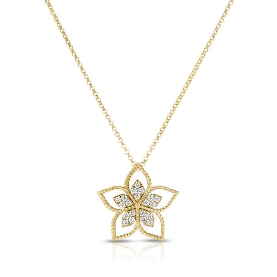 Roberto Coin 18K Gold Vernazza Medium Open Frame Diamond Flower Necklace - 7773682AY17X