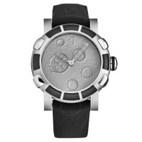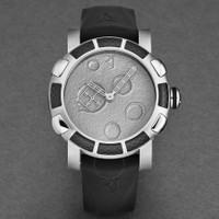 Silver-tone stainless steel case with a black rubber strap. Fixed black stainless steel bezel. Grey dial with silver-tone hands. Dial Type: Analog. Romain Jerome Calibre RJ2901 automatic movement. Scratch resistant sapphire crystal. Pull / push crown. Solid case back. Round case shape, case size: 46 mm, case thickness: 16.5 mm. Band width: 22 mm, band length: 8 inches. Deployment with push button release clasp. Water resistant at 30 meters / 100 feet. Functions: hour, minute, second. Additional Info: mechanical self-winding movement, 28'800 vph. Moon Dust Series. Luxury watch style. Romain Jerome Moon dust Automatic Grey Dial Men's Watch RJMDAU.401.10. CASE Case Size: 46 Case Thickness: 16.5 mm Case Material: Stainless Steel Case Shape: Round Case Back: Solid BAND Band Material: Rubber Band Type: Strap Band Color: Black Band Length: 8 inches Band Width: 22 mm Clasp: Deployment with Push Button Release DIAL Dial Color: Grey Type: Analog Crystal: Scratch Resistant Sapphire Hands: Silver-tone Bezel: Fixed Bezel Color: Black Bezel Material: Stainless Steel Crown: Pull / Push INFORMATION Brand: Romain Jerome Series: Moon Dust Collection Name: Moon dust Gender: Mens Model: RJMDAU.401.10 Movement: Automatic Engine: Romain Jerome Calibre RJ2901 FEATURES Water Resistance: 30 meters / 100 feet Functions: Hour, Minute, Second Watch Features: Analog, Rubber, Stainless Steel ADDITIONAL INFO Watch Style: Luxury Warranty: 2 Year Jomashop Warranty Additional Info: Mechanical self-winding movement, 28'800 vph Jomashop Sku: Y-A43WG Department: Watches Category: Watches
