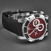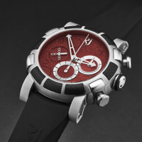 Silver-tone stainless steel case with a black rubber strap. Fixed black stainless steel bezel. Red dial with silver-tone hands. Dial Type: Analog. Luminescent hands. RJ7753 Mechanical automatic-winding Chronograph movement automatic movement. Scratch resistant sapphire crystal. Pull / push crown. Solid case back. Round case shape, case size: 46 mm, case thickness: 17 mm. Band width: 22 mm, band length: 8 inches. Deployment with push button release clasp. Water resistant at 30 meters / 100 feet. Functions: chronograph, hour, minute, second. Moon Dust-dna Series. Luxury watch style. Romain Jerome Moon Dust-Dna Chronograph Automatic Red Dial Men's Watch RJMDCH.701.10. CASE Case Size: 46 Case Thickness: 17 mm Case Material: Stainless Steel Case Shape: Round Case Back: Solid BAND Band Material: Rubber Band Type: Strap Band Color: Black Band Length: 8 inches Band Width: 22 mm Clasp: Deployment with Push Button Release DIAL Dial Color: Red Type: Analog Crystal: Scratch Resistant Sapphire Hands: Silver-tone Luminiscence: Hands Bezel: Fixed Bezel Color: Black Bezel Material: Stainless Steel Crown: Pull / Push INFORMATION Brand: Romain Jerome Series: Moon Dust-Dna Collection Name: Moon Dust-Dna Gender: Mens Model: RJMDCH.701.10 Movement: Automatic Engine: RJ7753 Mechanical automatic-winding Chronograph movement FEATURES Water Resistance: 30 meters / 100 feet Functions: Chronograph, Hour, Minute, Second Watch Features: Analog, Rubber, Stainless Steel, Chronograph ADDITIONAL INFO Watch Style: Luxury Warranty: 2 Year Jomashop Warranty Jomashop Sku: Y-A4ZPV Department: Watches