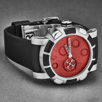 Silver-tone stainless steel case with a black rubber strap. Fixed black stainless steel bezel. Red dial with silver-tone hands. Dial Type: Analog. Romain Jerome Calibre RJ2901 automatic movement. Scratch resistant sapphire crystal. Pull / push crown. Solid case back. Round case shape, case size: 46 mm, case thickness: 16.5 mm. Band width: 22 mm, band length: 8 inches. Deployment with push button release clasp. Water resistant at 30 meters / 100 feet. Functions: hour, minute, second. Additional Info: mechanical self-winding movement, 28'800 vph. Moon Dust Series. Luxury watch style. Romain Jerome Moon dust Red Dial Men's Watch RJMDAU.701.10. CASE Case Size: 46 Case Thickness: 16.5 mm Case Material: Stainless Steel Case Shape: Round Case Back: Solid BAND Band Material: Rubber Band Type: Strap Band Color: Black Band Length: 8 inches Band Width: 22 mm Clasp: Deployment with Push Button Release DIAL Dial Color: Red Type: Analog Crystal: Scratch Resistant Sapphire Hands: Silver-tone Bezel: Fixed Bezel Color: Black Bezel Material: Stainless Steel Crown: Pull / Push INFORMATION Brand: Romain Jerome Series: Moon Dust Collection Name: Moon dust Gender: Mens Model: RJMDAU.701.10 Movement: Automatic Engine: Romain Jerome Calibre RJ2901 FEATURES Water Resistance: 30 meters / 100 feet Functions: Hour, Minute, Second Watch Features: Analog, Rubber, Stainless Steel ADDITIONAL INFO Watch Style: Luxury Warranty: 2 Year Jomashop Warranty Additional Info: Mechanical self-winding movement, 28'800 vph Jomashop Sku: Y-A44TY Department: Watches Category: Watches