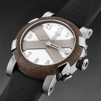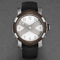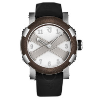 Silver-tone stainless steel case with a black rubber strap. Fixed brown stainless steel bezel. White dial with silver-tone hands and Arabic numeral hour markers. Dial Type: Analog. Luminescent hands. RJ2001 automatic movement. Scratch resistant sapphire crystal. Pull / push crown. Solid case back. Round case shape, case size: 46 mm, case thickness: 14.5 mm. Band width: 22 mm, band length: 8 inches. Deployment with push button release clasp. Water resistant at 30 meters / 100 feet. Functions: hour, minute. Additional Info: mechanical self-winding movement - 28,800 vph. Titanic A La Grande Series. Luxury watch style. Romain Jerome Titanic A La Grande Automatic White Dial Men's Watch RJ.TG.AU.201.10. CASE Case Size: 46 Case Thickness: 14.5 mm Case Material: Stainless Steel Case Shape: Round Case Back: Solid BAND Band Material: Rubber Band Type: Strap Band Color: Black Band Length: 8 inches Band Width: 22 mm Clasp: Deployment with Push Button Release DIAL Dial Color: White Type: Analog Crystal: Scratch Resistant Sapphire Hands: Silver-tone Dial Markers: Arabic Numeral Luminiscence: Hands Bezel: Fixed Bezel Color: Brown Bezel Material: Stainless Steel Crown: Pull / Push INFORMATION Brand: Romain Jerome Series: Titanic A La Grande Collection Name: Titanic A La Grande Gender: Mens Model: RJ.TG.AU.201.10 Movement: Automatic Engine: RJ2001 FEATURES Water Resistance: 30 meters / 100 feet Functions: Hour, Minute Watch Features: Analog, Rubber, Stainless Steel ADDITIONAL INFO Watch Style: Luxury Warranty: 2 Year Jomashop Warranty Additional Info: Mechanical self-winding movement - 28,800 vph Jomashop Sku: Y-A48TX Department: Watches Category: Watches