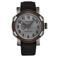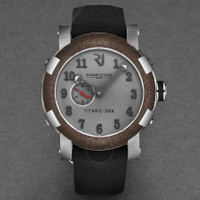 Silver-tone stainless steel case with a black rubber strap. Fixed brown bezel. Grey dial with black hands and Arabic numeral hour markers. Dial Type: Analog. Luminescent hands. Romain Jerome calibre C22RJ51 automatic movement. Scratch resistant sapphire crystal. Pull / push crown. Solid case back. Round case shape, case size: 46 mm, case thickness: 14.5 mm. Band width: 22 mm, band length: 8 inches. Deployment with push button release clasp. Water resistant at 30 meters / 100 feet. Functions: hour, minute, second. Additional Info: hours, minutes, small seconds. Titanic Series. Luxury watch style. Watch label: Swiss Made. Romain Jerome Titanic Automatic Grey Dial Men's Watch RJ.TI.AU.401.10. CASE Case Size: 46 Case Thickness: 14.5 mm Case Material: Stainless Steel Case Shape: Round Case Back: Solid BAND Band Material: Rubber Band Type: Strap Band Color: Black Band Length: 8 inches Band Width: 22 mm Clasp: Deployment with Push Button Release DIAL Dial Color: Grey Type: Analog Crystal: Scratch Resistant Sapphire Hands: Black Dial Markers: Arabic Numeral Luminiscence: Hands Bezel: Fixed Bezel Color: Brown Crown: Pull / Push INFORMATION Brand: Romain Jerome Series: Titanic Collection Name: Titanic Gender: Mens Model: RJ.TI.AU.401.10 Watch Label: Swiss Made Movement: Automatic Engine: Romain Jerome calibre C22RJ51 FEATURES Water Resistance: 30 meters / 100 feet Functions: Hour, Minute, Second Watch Features: Analog, Rubber, Stainless Steel ADDITIONAL INFO Watch Style: Luxury Warranty: 2 Year Jomashop Warranty Additional Info: Hours, Minutes, Small Seconds Jomashop Sku: Y-A3Y57 Department: Watches Category: Watches