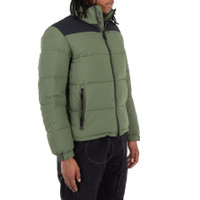Save The Duck Men's Outerwear. Fashion category: Coats & Jackets. SKU: D31302M-COFY17-50056. Color: Green. Save The Duck Taxus Padded Puffer Jacket. This Save The Duck puffer jacket features a stylish olive green design with a contrasting black shoulder panel. Made from high-quality, animal-free materials, it offers warmth and comfort with its quilted construction and eco-friendly insulation. The full-zip front, high collar, and zippered pockets provide functionality, while the elastic cuffs and hem ensure a snug fit. 100 % Recycled polyester. GENERAL Color: Green INFORMATION Brand: Save The Duck Gender: Mens Model: D31302M-COFY17-50056 DETAILS Category: Outerwear Apparel Type: Coats & Jackets Material: Polyester ADDITIONAL INFO Jomashop Sku: -D31302MCOFY1750056 Department: Clothing