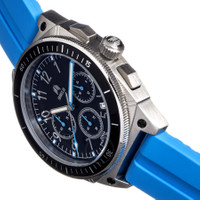 Stainless steel case with a blue rubber strap. Uni-directional rotating stainless steel bezel with an inlaid black ring. Black dial with luminous siulver and blue hands and Arabic numeral hour markers. Minute markers around the outer rim. Dial Type: Analog. Quartz movement. Scratch resistant mineral crystal. Screw down crown. Solid case back. Round case shape. Case size: 43 mm. Case thickness: 14 mm. Band width: 17 mm. Band length: 8.25 inches. Tang clasp. Water resistant at 200 meters / 660 feet. Sonar Series. Casual watch style. Shield Sonar Black Dial Men's Watch SLDSH113-3. INFORMATION Brand: Shield Series: Sonar Collection Name: Sonar Gender: Mens Model: SLDSH113-3 Movement: Quartz CASE Case Size: 43 mm Case Thickness: 14 mm Case Material: Stainless Steel Case Shape: Round Case Back: Solid BAND Band Material: Rubber Band Type: Strap Band Color: Blue Band Length: 8.25 inches Band Width: 17 mm Clasp: Tang DIAL Dial Color: Black Type: Analog Crystal: Scratch Resistant Mineral Hands: Luminous Siulver and Blue Dial Markers: Arabic Numeral Second Markers: Minute Markers around the outer rim Bezel: Uni-directional Rotating Bezel Color: Silver-tone Bezel Material: Stainless Steel with an inlaid Black Ring Crown: Screw Down FEATURES Water Resistance: 200 meters / 660 feet Calendar: Date display between 4 and 5 o'clock position Functions: Chronograph, Date, Hour, Minute, Second Watch Features: Chronograph, Stainless Steel, Rubber, Analog ADDITIONAL INFO Watch Style: Casual Warranty: With Manufacturers Guarantee UPC Code: 840148802803 Jomashop Sku: Y-139274 Department: Watches Category: Watches