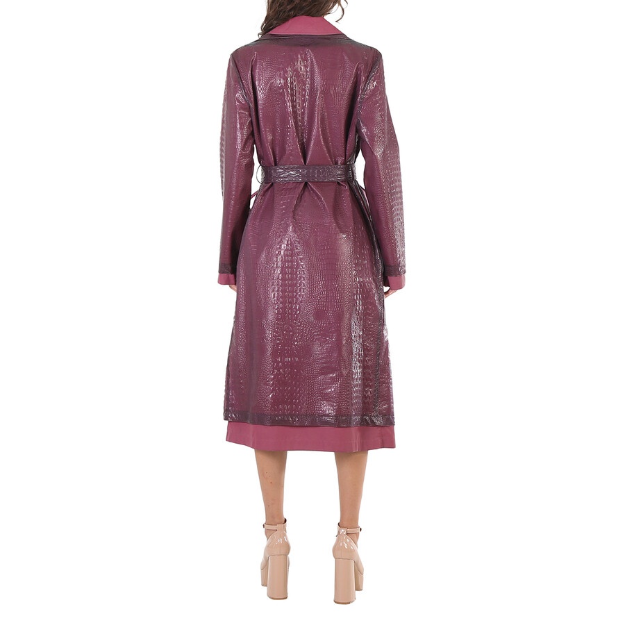 Sies Marjan Ladies Outerwear. SKU: 11EP0031-LOTUS. Color: Purple. Sies Marjan Devin Embossed Double Belted Reflective Trench Coat. This trench coat from Sies Marjan features a double layer, self belt, inset pockets at hop with button closures, inside chest pocket, croco embossed gummy fabric outer, double breasted with hidden placket closures, and a peak lapel at collar. Inner layer is Sies Marjan's enzyme washed technical fabric that changes color according to lighting conditions. Materials: 100% Polyester. Lining-100% Polyurethane. Made in USA. GENERAL Color: Purple INFORMATION Brand: Sies Marjan Gender: Womens Model: 11EP0031-LOTUS DETAILS Category: Outerwear Apparel Type: Coats & Jackets ADDITIONAL INFO Jomashop Sku: -SM11EP0031LOTUS Department: Apparel
