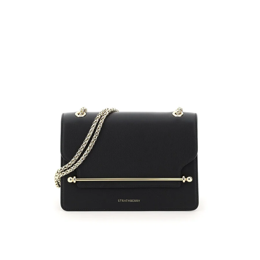Strathberry Ladies Shoulder Bag. SKU: 20174-100-500 EAST/WEST 100. Color: Black. Size: 23 W x 16 H x 11 D cm, 30 cm handle, 114 cm strap. Strathberry East/West Bag. Strathberry East/West bag handcrafted in calf leather with the iconic branded metal bar on the front. Flap with magnetic closure, gold-tone logo print on the front, sliding double-handle tubular chain shoulder strap that can be worn by hand, on the shoulder or crossbody. Interior lined in suede microfiber with a flat pocket and two compartments, gold-tone metal hardware.. Composition: 100% CALF LEATHER GENERAL Size Info: 23 W x 16 H x 11 D cm, 30 cm handle, 114 cm strap Color: Black INFORMATION Brand: Strathberry Gender: Womens Model: 20174-100-500 EAST/WEST 100 ADDITIONAL INFO Jomashop Sku: Z-7ERKX Department: Bags Category: Shoulder Bag
