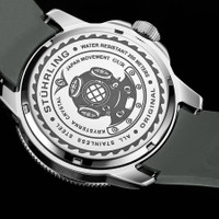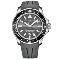 Stainless steel case with a grey rubber strap. Uni-directional rotating (120 click) coin edge stainless steel bezel with a black ring. Grey dial with luminous silver-tone hands and index hour markers. Minute markers around the outer rim. Dial Type: Analog. Luminescent hands and markers. Date display at the 6 o'clock position. Miyota caliber 2115 quartz movement. Scratch resistant Krysterna crystal. Screw down crown. Solid case back. Round case shape. Case size: 42.5 mm. Case thickness: 13.5 mm. Band width: 20 mm. Band length: 8.5 inches. Tang clasp. Water resistant at 200 meters / 660 feet. Functions: date, hour, minute, second. Aquadiver Series. Dive watch style. Watch label: Japan Movt. Stuhrling Original Aquadiver Quartz Grey Dial Men's Watch M13624. INFORMATION Brand: Stuhrling Original Series: Aquadiver Collection Name: Aquadiver Gender: Mens Model: M13624 Watch Label: Japan Movt Movement: Quartz Engine: Miyota Caliber 2115 CASE Case Size: 42.5 mm Case Thickness: 13.5 mm Case Material: Stainless Steel Case Shape: Round Case Back: Solid BAND Band Material: Rubber Band Type: Strap Band Color: Grey Band Length: 8.5 inches Band Width: 20 mm Clasp: Tang DIAL Dial Color: Grey Type: Analog Crystal: Scratch Resistant Krysterna Hands: Luminous Silver-tone Dial Markers: Index Second Markers: Minute Markers around the outer rim Luminiscence: Hands and Markers Bezel: Uni-directional Rotating (120 Click) Coin Edge Bezel Color: Silver-tone Bezel Material: Stainless Steel with a Black Ring Crown: Screw Down FEATURES Water Resistance: 200 meters / 660 feet Calendar: Date display at the 6 o'clock position Functions: Date, Hour, Minute, Second Watch Features: Stainless Steel, Rubber, Analog ADDITIONAL INFO Watch Style: Dive Warranty: With Manufacturers Guarantee UPC Code: 190638110995 Jomashop Sku: ST-OM13624 Department: Watches Category: Watches