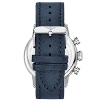 Silver-tone alloy case with a blue leather strap. Fixed silver-tone alloy bezel. Blue dial with luminous silver-tone pencil-style hands and index hour markers. Arabic numerals appear at the 3, 6, 9 and 12 o'clock positions. Tachymeter markers around the outer rim. Dial Type: Analog. Luminescent hands. Date display between the 4 and 5 o'clock positions. Two sub-dials displaying: 12 hours and 24 hours. Quartz movement. Scratch resistant mineral crystal. Pull / push crown. Solid case back. Round case shape. Case size: 45 mm. Case thickness: 10.8 mm. Band width: 20 mm. Band length: 9.65 inches. Tang clasp. Water resistant at 100 meters / 330 feet. Functions: date, hour, minute, second, tachymeter, 24 hour. Aviator Series. Casual watch style. Stuhrling Original Aviator Quartz Blue Dial Men's Watch M13650. INFORMATION Brand: Stuhrling Original Series: Aviator Collection Name: Aviator Gender: Mens Model: M13650 Movement: Quartz CASE Case Size: 45 mm Case Thickness: 10.8 mm Case Material: Alloy Case Shape: Round Case Back: Solid BAND Band Material: Leather Band Type: Strap Band Color: Blue Band Length: 9.65 inches Band Width: 20 mm Clasp: Tang DIAL Dial Color: Blue Type: Analog Crystal: Scratch Resistant Mineral Hands: Luminous Silver-tone Pencil-style Dial Markers: Index Second Markers: Arabic Numerals appear at the 3, 6, 9 and 12 o'clock positions. Tachymeter Markers around the outer rim Sub Dials: Two - 12 Hours and 24 Hours Luminiscence: Hands Bezel: Fixed Bezel Color: Silver-tone Bezel Material: Alloy Crown: Pull / Push FEATURES Water Resistance: 100 meters / 330 feet Calendar: Date display between the 4 and 5 o'clock positions Functions: Date, Hour, Minute, Second, Tachymeter, 24 Hour Watch Features: Leather, Analog ADDITIONAL INFO Watch Style: Casual Warranty: With Manufacturers Guarantee UPC Code: 190638111251 Jomashop Sku: ST-OM13650 Department: Watches Category: Watches