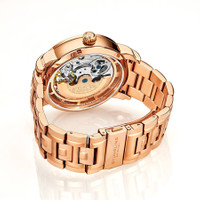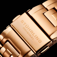 Rose gold-tone stainless steel case with a rose gold-tone stainless steel bracelet. Fixed rose gold-tone stainless steel bezel. Rose gold-tone skeleton dial with rose gold-tone dauphine-style shape hands and index hour markers. Dial Type: Analog. Two - am/pm indicator, dual time subdials. Automatic movement. Scratch resistant krysterna crystal. Pull / push crown. Transparent case back. Round case shape, case size: 47 mm, case thickness: 12.5 mm. Band length: 9.25 inches. Deployment with push button release clasp. Water resistant at 50 meters / 165 feet. Functions: hour, minute, am/pm indicator, dual time. Dress watch style. Stuhrling Original Legacy Automatic Men's Watch M13676. INFORMATION Brand: Stuhrling Original Series: Legacy Collection Name: Legacy Gender: Mens Model: M13676 Movement: Automatic CASE Case Size: 47 mm Case Thickness: 12.5 mm Case Material: Stainless Steel Case Shape: Round Case Back: Transparent BAND Band Material: Stainless Steel Band Type: Bracelet Band Color: Rose Gold-tone Band Length: 9.25 inches Clasp: Deployment with Push Button Release DIAL Dial Color: Rose Gold-tone Skeleton Type: Analog Crystal: Scratch Resistant Krysterna Hands: Rose Gold-tone Dauphine-style shape Dial Markers: Index Sub Dials: Two - AM/PM Indicator and Dual Time Bezel: Fixed Bezel Color: Rose Gold-tone Bezel Material: Stainless Steel Crown: Pull / Push FEATURES Water Resistance: 50 meters / 165 feet Functions: Hour, Minute, AM/PM Indicator, Dual Time Watch Features: Stainless Steel, Gold, Analog ADDITIONAL INFO Watch Style: Dress Warranty: With Manufacturers Guarantee UPC Code: 190638111510 Jomashop Sku: ST-OM13676 Department: Watches Category: Watches