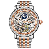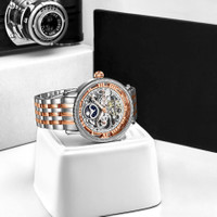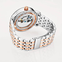 Silver-tone alloy case with a two-tone (silver-tone and rose gold-tone) stainless steel bracelet. Fixed silver-tone alloy bezel. Rose (skeleton) dial with luminous rose gold-tone dauphine-style hands and Roman numeral hour markers. Dial Type: Analog. Luminescent hands. Two sub-dials displaying: am/pm indicator and 12 hour (dual time). Automatic movement. Scratch resistant mineral crystal. Pull / push crown. Transparent case back. Round case shape, case size: 48.2 mm. Case thickness: 12.75 mm. Band length: 8.25 inches. Deployment clasp with a push button release. Water resistant at 50 meters / 165 feet. Functions: hour, minute, am/pm indicator, dual time. Legacy Series. Dress watch style. Stuhrling Original Legacy Automatic Rose Dial Two-tone Men's Watch M13565. INFORMATION Brand: Stuhrling Original Series: Legacy Collection Name: Legacy Gender: Mens Model: M13565 Movement: Automatic CASE Case Size: 48.2 mm Case Thickness: 12.75 mm Case Material: Alloy Case Shape: Round Case Back: Transparent BAND Band Material: Stainless Steel Band Type: Bracelet Band Color: Two-tone (Silver-tone and Rose Gold-tone) Band Length: 8.25 inches Clasp: Deployment with Push Button Release DIAL Dial Color: Rose (Skeleton) Type: Analog Crystal: Scratch Resistant Mineral Hands: Luminous Rose Gold-tone Dauphine-style Dial Markers: Roman Numeral Sub Dials: Two - AM/PM Indicator and 12 Hour (Dual Time) Luminiscence: Hands Bezel: Fixed Bezel Color: Silver-tone Bezel Material: Alloy Crown: Pull / Push FEATURES Water Resistance: 50 meters / 165 feet Functions: Hour, Minute, AM/PM Indicator, Dual Time Watch Features: Stainless Steel, Gold, Analog ADDITIONAL INFO Watch Style: Dress Warranty: With Manufacturers Guarantee UPC Code: 190638110407 Jomashop Sku: ST-OM13565 Department: Watches Category: Watches