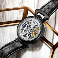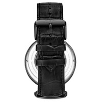 Black alloy case with a black leather strap. Fixed black alloy bezel. Silver-tone dial with silver-tone Breguet-style shape hands and index hour markers. Minute markers around the outer rim. Dial Type: Analog. Two - am/pm indicator, dual time subdials. Automatic movement. Scratch resistant mineral crystal. Pull / push crown. Transparent case back. Round case shape, case size: 46 mm, case thickness: 13.25 mm. Band length: 9 inches. Buckle clasp. Water resistant at 50 meters / 165 feet. Functions: hour, minute, am/pm indicator, dual time. Dress watch style. Stuhrling Original Legacy Automatic Silver Dial Men's Watch M13570. INFORMATION Brand: Stuhrling Original Series: Legacy Collection Name: Legacy Gender: Mens Model: M13570 Movement: Automatic CASE Case Size: 46 mm Case Thickness: 13.25 mm Case Material: Alloy Case Shape: Round Case Back: Transparent BAND Band Material: Leather Band Type: Strap Band Color: Black Band Length: 9 inches Clasp: Buckle DIAL Dial Color: Silver-tone Type: Analog Crystal: Scratch Resistant Mineral Hands: Silver-tone Breguet-style shape Dial Markers: Index Second Markers: Minute Markers around the outer rim Sub Dials: Two - AM/PM Indicator and Dual Time Bezel: Fixed Bezel Color: Black Bezel Material: Alloy Crown: Pull / Push FEATURES Water Resistance: 50 meters / 165 feet Functions: Hour, Minute, AM/PM Indicator, Dual Time Watch Features: Leather, Analog ADDITIONAL INFO Watch Style: Dress Warranty: With Manufacturers Guarantee UPC Code: 190638110452 Jomashop Sku: ST-OM13570 Department: Watches Category: Watches