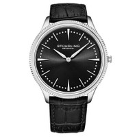 Men's Quartz Silver Case, Silver Bezel, Black Dial, Silver Hands and Markers, Black Alligator Embossed Genuine Leather Strap Watch Silver-tone stainless steel case with a black leather strap. Fixed silver-tone stainless steel bezel. Black dial with silver-tone hands and index hour markers. Minute markers around the outer rim. Dial Type: Analog. Quartz movement. Scratch resistant mineral crystal. Pull / push crown. Solid case back. Round case shape, case size: 41 mm, case thickness: 7 mm. Buckle clasp. Water resistant at 30 meters / 100 feet. Functions: hour, minute. Symphony Series. Dress watch style. Stuhrling Original Symphony Black Dial Men's Watch M15879. INFORMATION Brand: Stuhrling Original Series: Symphony Collection Name: Symphony Gender: Mens Model: M15879 Movement: Quartz CASE Case Size: 41 mm Case Thickness: 7 mm Case Material: Stainless Steel Case Shape: Round Case Back: Solid BAND Band Material: Leather Band Type: Strap Band Color: Black Band Length: 8.5 inches Clasp: Buckle DIAL Dial Color: Black Type: Analog Crystal: Scratch Resistant Mineral Hands: Silver-tone Dial Markers: Index Second Markers: Minute Markers around the outer rim Bezel: Fixed Bezel Color: Silver-tone Bezel Material: Stainless Steel Crown: Pull / Push FEATURES Water Resistance: 30 meters / 100 feet Functions: Hour, Minute Watch Features: Stainless Steel, Leather, Analog, Alligator Leather ADDITIONAL INFO Watch Style: Dress Warranty: With Manufacturers Guarantee UPC Code: 190638129713 Jomashop Sku: ST-OM15879 Department: Watches Category: Watches