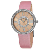 Stainless steel case with a pink leather strap. Fixed stainless steel set with crystals bezel. Pink (crystal-set) dial with silver-tone hands and index hour markers. Roman numerals appear at the 3, 6, 9 and 12 o'clock positions. Dial Type: Analog. Quartz movement. Scratch resistant mineral crystal. Pull / push crown. Solid case back. Round case shape. Case size: 34 mm. Case thickness: 9 mm. Tang clasp. Water resistant at 50 meters / 165 feet. Functions: hour, minute, second. Vogue Series. Fashion watch style. Stuhrling Original Vogue Pink Dial Ladies Watch M15317. INFORMATION Brand: Stuhrling Original Series: Vogue Collection Name: Vogue Gender: Womens Model: M15317 Movement: Quartz CASE Case Size: 34 mm Case Thickness: 9 mm Case Material: Stainless Steel Case Shape: Round Case Back: Solid BAND Band Material: Leather Band Type: Strap Band Color: Pink Band Length: 9 inches Clasp: Tang DIAL Dial Color: Pink (Crystal-set) Type: Analog Crystal: Scratch Resistant Mineral Hands: Silver-tone Dial Markers: Index Second Markers: Roman Numerals appear at the 3, 6, 9 and 12 o'clock positions Bezel: Fixed Bezel Color: Silver-tone Bezel Material: Stainless Steel set with Crystals Crown: Pull / Push FEATURES Water Resistance: 50 meters / 165 feet Functions: Hour, Minute, Second Watch Features: Stainless Steel, Leather, Analog ADDITIONAL INFO Watch Style: Fashion Warranty: With Manufacturers Guarantee UPC Code: 190638124091 Jomashop Sku: ST-OM15317 Department: Watches Category: Watches