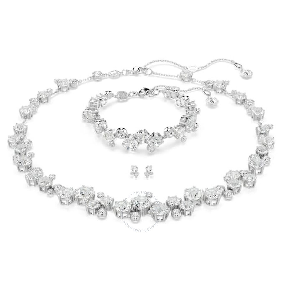 Swarovski Ladies Set. Constella series. SKU: 5738285. Color: White. Swarovski Constella Rhodium Plated Crystal Set. This starry Constella set includes a matching necklace, bracelet, and stud earrings, each crafted with a rhodium-plated finish. Designed to dazzle, all three pieces feature clear crystals in varying sizes, beautifully arranged in prong and bezel settings. Both the necklace and bracelet are accented with octagonal stations, allowing for effortless size adjustment and added versatility. Necklace length: 14 7/8 - 17 3/4 inch. Bracelet length: 6 1/8 - 7 7/8 inch. Earring size: 1/4 x 3/8 inch. Material: Crystals, Rhodium plated. GENERAL Color: White Collection Name: Constella INFORMATION Brand: Swarovski Series: Constella Gender: Womens Model: 5738285 DETAILS Ring Style: Fashion Material : Rhodium Plated Stone Type: Crystal ADDITIONAL INFO Jomashop Sku: SW5738285 Department: Jewelry Category: Set