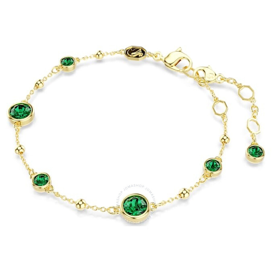 Swarovski Men's Bracelets. Imber Chain series. SKU: 5730676. Color: Green. Swarovski Gold-Tone Plated Round Cut Imber Bracelet. The Imber bracelet showcases a gold-tone plated chain adorned with a delicate strand of metal droplets, elegantly interspersed with round green crystals set in refined bezel settings. It fastens with a secure lobster clasp and includes an additional elongation chain, ensuring a comfortable and adjustable fit for all wrist sizes. Size: 6 1/2 - 7 5/8 inch. GENERAL Color: Green Collection Name: Imber Chain INFORMATION Brand: Swarovski Series: Imber Chain Gender: Mens Model: 5730676 DETAILS Size Info: 6 1/2 - 7 5/8 inch Bracelet Style : Chain Ring Style: Fashion Closure Type: Lobster Material : Gold Plated ADDITIONAL INFO Jomashop Sku: SW5730676 Department: Jewelry Category: Bracelets