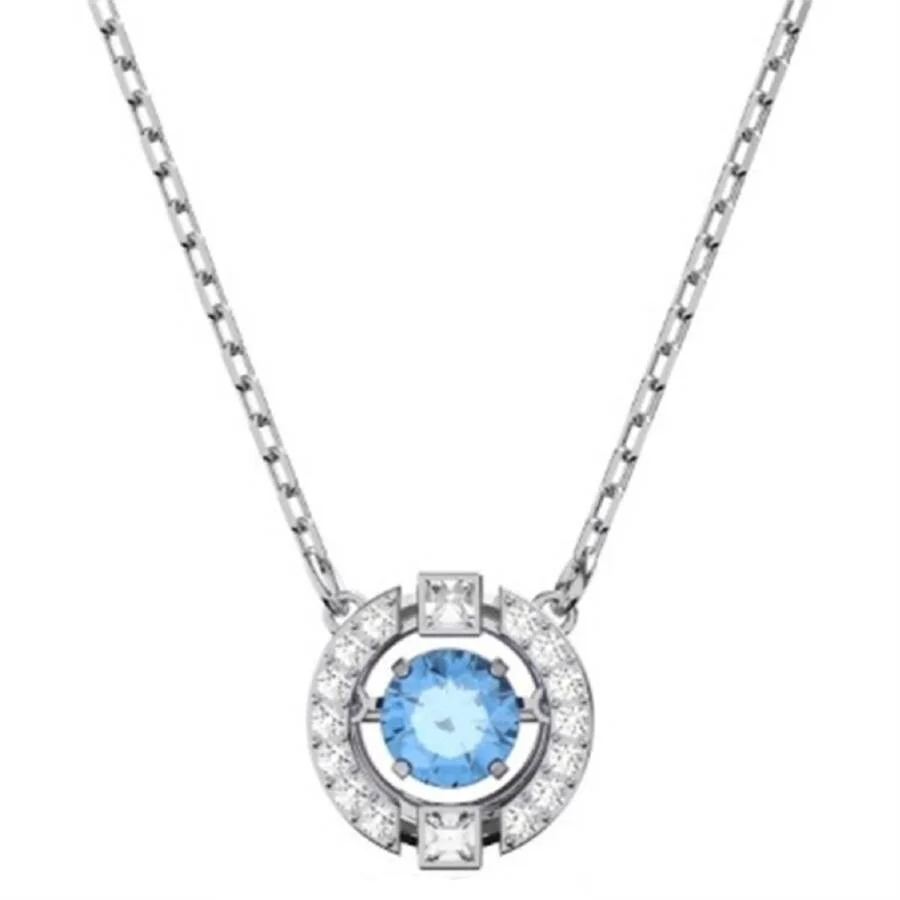 Swarovski Ladies Necklaces. Dancing Crystal series. SKU: 5604195. Barcode: 191453144127. Swarovski Ladies Rhodium Plated Sparkling Dance Necklace. Features a round blue stone inside a 3D cage enhanced with crystal pave. GENERAL Collection Name: Dancing Crystal INFORMATION Brand: Swarovski Series: Dancing Crystal Gender: Womens Model: 5604195 ADDITIONAL INFO UPC Code: 191453144127 Jomashop Sku: SW5604195 Department: Jewelry Category: Necklaces