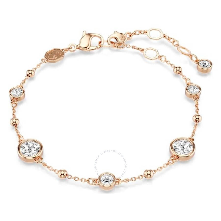 Swarovski Men's Bracelets. Imber Chain series. SKU: 5730677. Color: White. Swarovski Rose Gold-Tone Plated Round Cut Imber Bracelet. The Imber bracelet showcases a rose gold-tone plated chain adorned with a delicate strand of metal droplets, elegantly interspersed with round clear crystals set in refined bezel settings. It fastens with a secure lobster clasp and includes an additional elongation chain, ensuring a comfortable and adjustable fit for all wrist sizes. Size: 6 1/2 - 7 5/8 inch. GENERAL Color: White Collection Name: Imber Chain INFORMATION Brand: Swarovski Series: Imber Chain Gender: Mens Model: 5730677 DETAILS Size Info: 6 1/2 - 7 5/8 inch Ring Style: Fashion ADDITIONAL INFO Jomashop Sku: SW5730677 Department: Jewelry Category: Bracelets