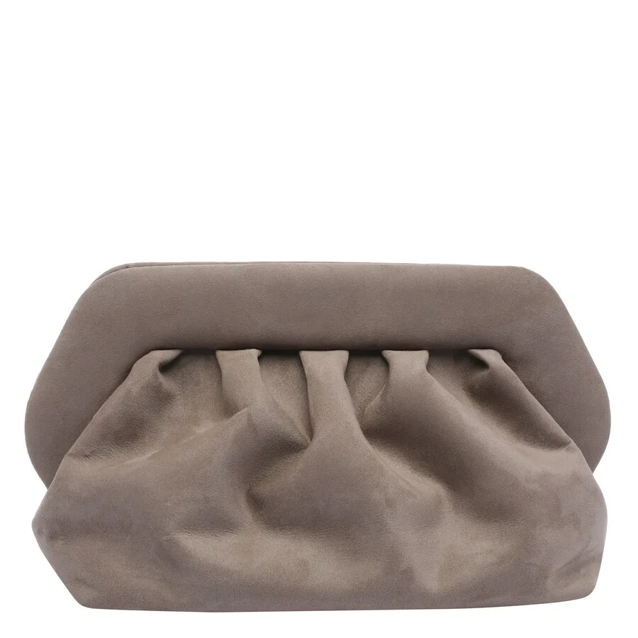 THEMOIRE Ladies Clutch. SKU: TMFW25BSUE58MUD. Color: Grey. THEMOIRE Bios Suede Clutch. The Moire' grey Bios suede clutch, magnetic closure, adaptable and removable strap, suede model. Composition: 100% Fabric GENERAL Color: Grey INFORMATION Brand: Themoire Gender: Womens Model: TMFW25BSUE58MUD ADDITIONAL INFO Jomashop Sku: Z-ARJ3T Department: Bags Category: Clutches