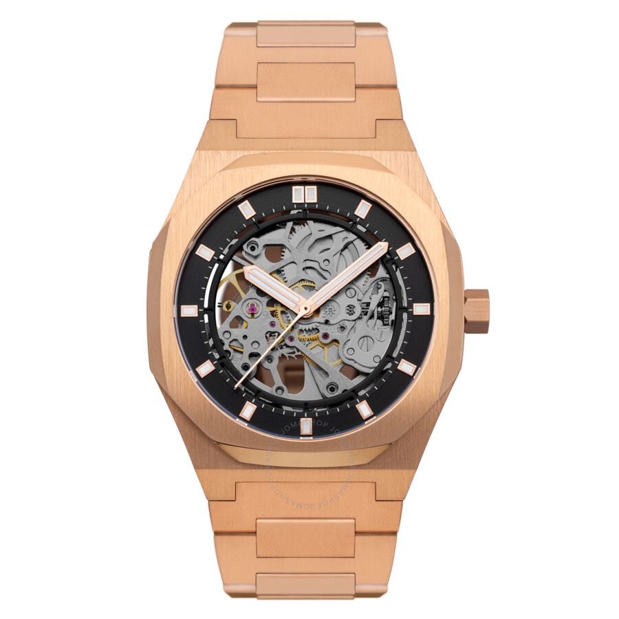 Rose gold-tone stainless steel case and bracelet. Fixed rose gold-tone stainless steel bezel. Black dial with rose gold-tone hands and index hour markers. Minute markers around the outer rim. Dial Type: Analog. Luminescent hands and markers. Automatic movement. Scratch resistant mineral crystal. Pull / push crown. Round case shape, case size: 42 mm, case thickness: 12 mm. Band width: 27 mm, band length: 8 inches. Fold over clasp with a safety release. Functions: hour, minute, second. Drake Series. Dress watch style. Thomas Earnshaw Drake Automatic Black Dial Men's Watch ES-8142-55. CASE Case Size: 42 Case Thickness: 12 mm Case Material: Stainless Steel Case Shape: Round BAND Band Material: Stainless Steel Band Type: Bracelet Band Color: Rose Gold-tone Band Length: 8 inches Band Width: 27 mm Clasp: Fold Over with Safety Release DIAL Dial Color: Black Type: Analog Crystal: Scratch Resistant Mineral Hands: Rose Gold-tone Dial Markers: Index Second Markers: Minute Markers around the outer rim Luminiscence: Hands and Markers Bezel: Fixed Bezel Color: Rose Gold-tone Bezel Material: Stainless Steel Crown: Pull / Push INFORMATION Brand: Thomas Earnshaw Series: Drake Collection Name: Drake Gender: Mens Model: ES-8142-55 Movement: Automatic FEATURES Functions: Hour, Minute, Second Watch Features: Analog, Stainless Steel, Gold ADDITIONAL INFO Watch Style: Dress Warranty: With Manufacturers Guarantee UPC Code: 194595038576 Jomashop Sku: TESES814255 Department: Watches Category: Watches