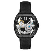 Sleek and striking, the Knightsbridge Automatic embraces openwork design with a fully transparent dial and exposed movement. Housed in a 45mm barrel-shaped case, this spectacular timepiece features Roman numeral accents and a double-curved lens. Pairing traditional elegance with contemporary flair, it redefines classic watchmaking. Black stainless steel case with a black genuine leather strap. Fixed black stainless steel bezel. Black dial with silver-tone hands and index hour markers. Minute markers around the outer rim. Dial Type: Analog. Luminescent hands and markers. Automatic movement. Scratch resistant mineral crystal. Pull / push crown. Transparent case back. Tonneau case shape, case size: 45 mm, case thickness: 14 mm. Band width: 22 mm, band length: 8 inches. Buckle clasp. Water resistant at 30 meters / 100 feet. Functions: hour, minute. Knightsbridge Series. Casual watch style. Thomas Earnshaw Knightsbridge Black Dial Men's Watch ES-8316-05. GENERAL Box Type: Original Box CASE Case Diameter: 45 mm Case Thickness: 14 mm Case Material: Stainless Steel Case Shape: Tonneau Case Back: Transparent BAND Band Material: Genuine Leather Band Type: Strap Band Color: Black Band Length: 8 inches Band Width: 22 mm Clasp: Buckle DIAL Dial Color: Black Type: Analog Crystal: Scratch Resistant Mineral Hands: Silver-tone Dial Markers: Index Second Markers: Minute Markers around the outer rim Luminiscence: Hands and Markers Bezel: Fixed Bezel Color: Black Bezel Material: Stainless Steel Crown: Pull / Push INFORMATION Brand: Thomas Earnshaw Series: Knightsbridge Collection Name: Knightsbridge Gender: Mens Model: ES-8316-05 Movement: Automatic FEATURES Water Resistance: 30 meters / 100 feet Functions: Hour, Minute Watch Features: Analog, Leather, Stainless Steel ADDITIONAL INFO Watch Style: Casual Warranty: With Manufacturers Guarantee UPC Code: 194595079807 Jomashop Sku: TESES831605 Department: Watches
