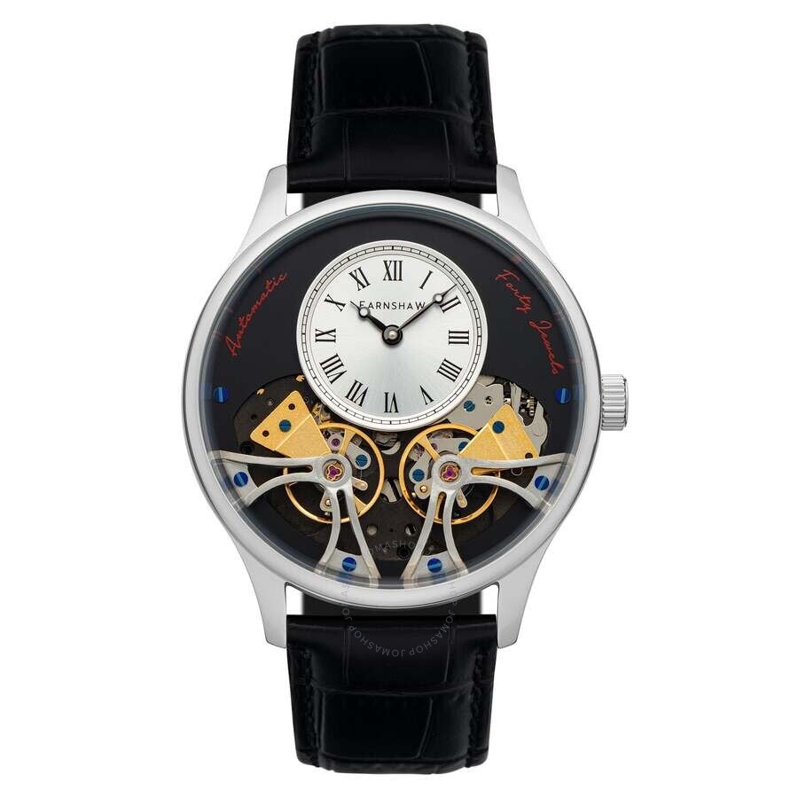 A watch to behold. Named after the physicist Michael Faraday (1791-1867) who contributed to the study of electromagnetism and electrochemistry. His main discoveries include the principles underlying electromagnetic induction, diamagnetism and electrolysis. Silver-tone stainless steel case with a black leather strap. Fixed silver-tone stainless steel bezel. White dial with black hands and Roman numeral hour markers. Minute markers around the outer rim. Dial Type: Analog. PTS - S05 automatic movement. Scratch resistant mineral crystal. Pull / push crown. Transparent case back. Round case shape, case size: 44 mm, case thickness: 15 mm. Band width: 22 mm, band length: 8 inches. Water resistant at 50 meters / 165 feet. Functions: hour, minute. Scientists Faraday Double Barrel Series. Casual watch style. Thomas Earnshaw Scientists Faraday Double Barrel White Dial Men's Watch ES-8179-01. CASE Case Size: 44 Case Thickness: 15 mm Case Material: Stainless Steel Case Shape: Round Case Back: Transparent BAND Band Material: Leather Band Type: Strap Band Color: Black Band Length: 8 inches Band Width: 22 mm DIAL Dial Color: White Type: Analog Crystal: Scratch Resistant Mineral Hands: Black Dial Markers: Roman Numeral Second Markers: Minute Markers around the outer rim Bezel: Fixed Bezel Color: Silver-tone Bezel Material: Stainless Steel Crown: Pull / Push INFORMATION Brand: Thomas Earnshaw Series: Scientists Faraday Double Barrel Collection Name: Scientists Faraday Double Barrel Gender: Mens Model: ES-8179-01 Movement: Automatic Engine: PTS - S05 FEATURES Water Resistance: 50 meters / 165 feet Functions: Hour, Minute Watch Features: Stainless Steel, Leather, Analog ADDITIONAL INFO Watch Style: Casual Warranty: With Manufacturers Guarantee UPC Code: 194595036497 Jomashop Sku: TESES817901 Department: Watches